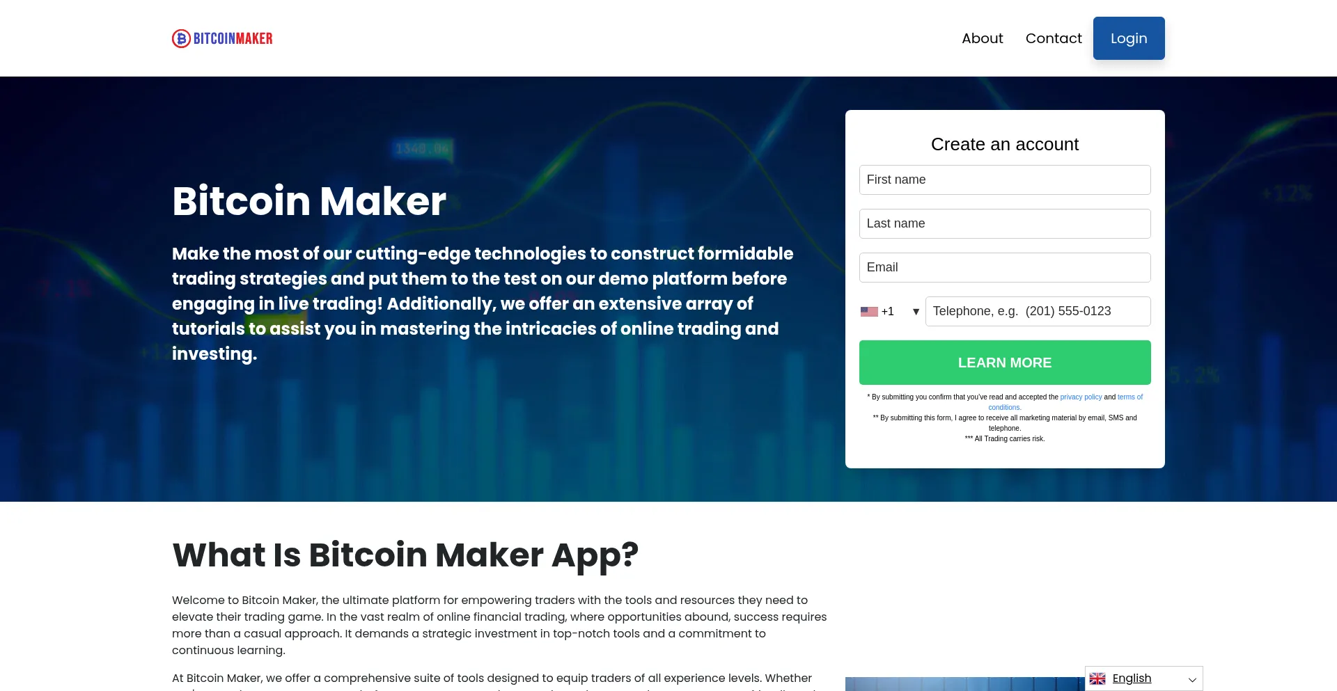 The bitcoinmaker.io website implements data collection forms requesting personal information including names, email addresses, phone numbers, or other sensitive details. Users should verify the legitimacy of it and review privacy policies before submitting personal data.