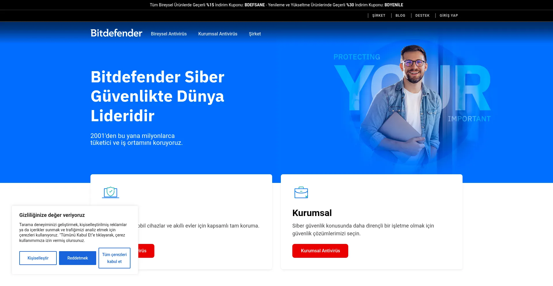 The website implements cookie consent mechanisms in compliance with privacy regulations such as GDPR or CCPA. This demonstrates that bitdefender.com.tr adheres to data protection standards and provides users with control over personal data collection practices.