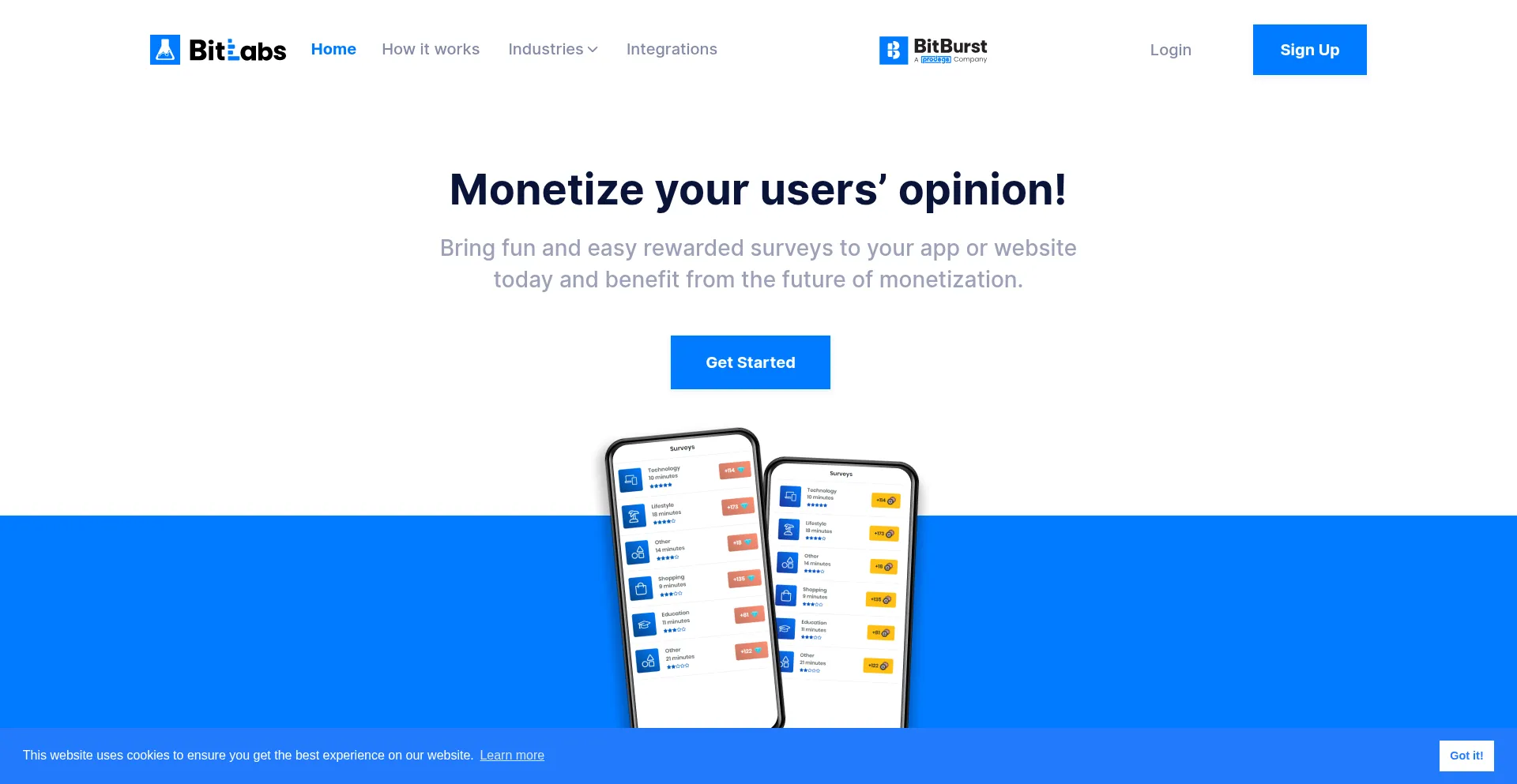 BitLabs helps publishers monetize user opinion with rewarded surveys. Boost your business by integrating BitLabs into your app now!