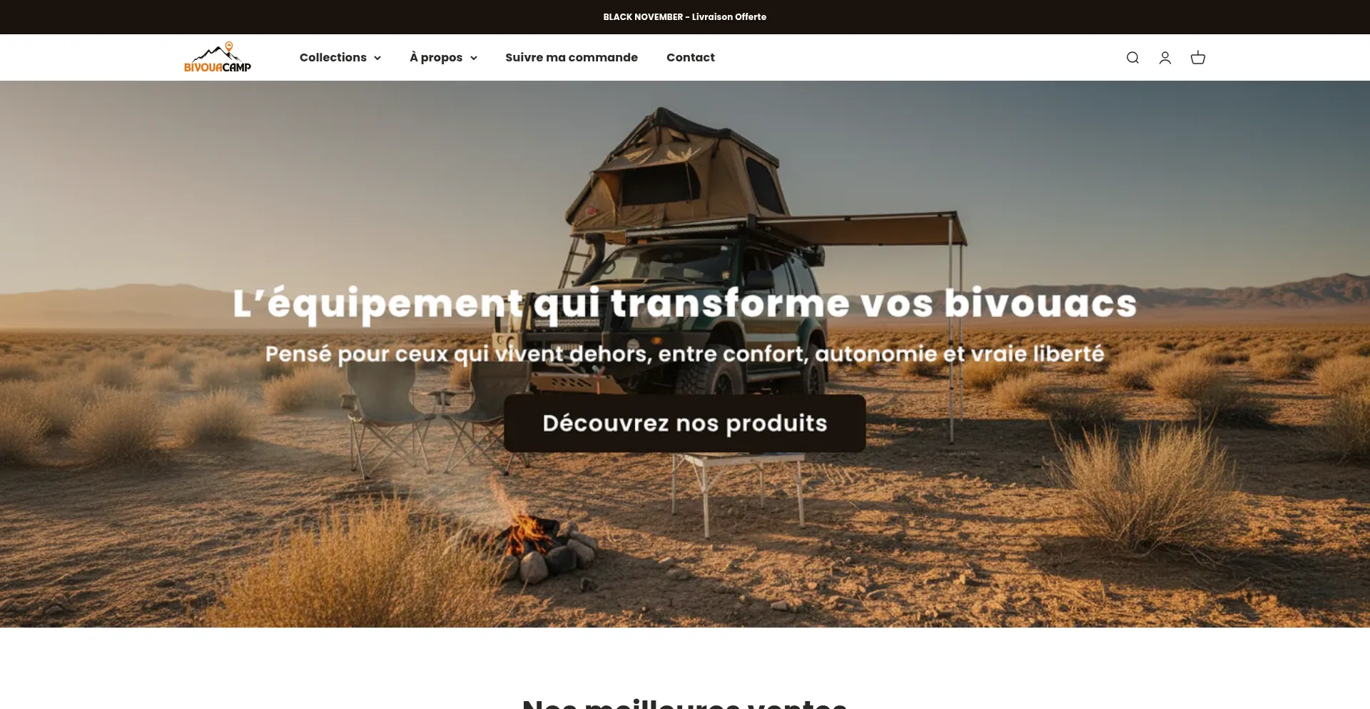 Bivouacamp est une boutique en ligne où vous trouvez l'essentiel pour vos bivouacs nomades : équipements, autonomie, confort et plein air. Livraison et retours offerts, sélec...