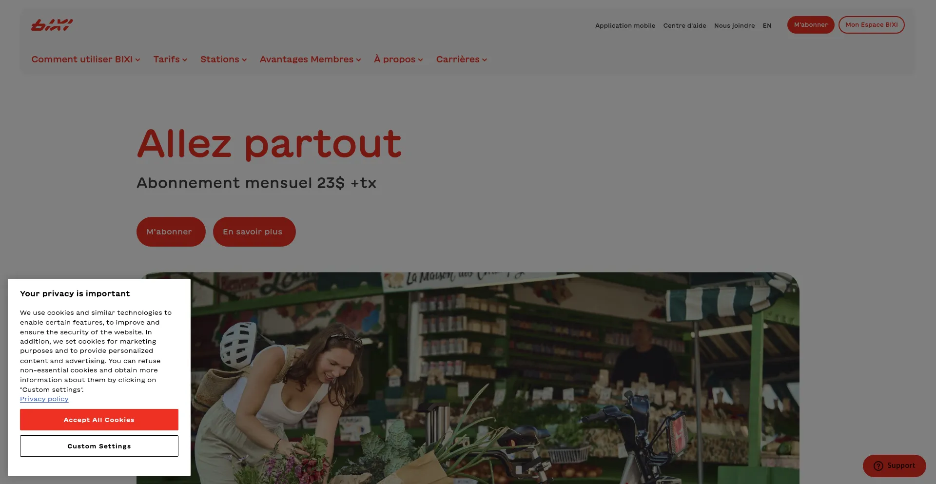 The website implements cookie consent mechanisms in compliance with privacy regulations such as GDPR or CCPA. This demonstrates that bixi.com adheres to data protection standards and provides users with control over personal data collection practices.