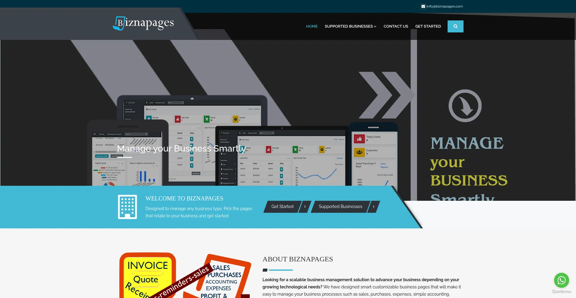 biznapages.com uses Bootstrap, a widely-adopted open-source framework for responsive web development. Bootstrap enables efficient creation of mobile-friendly interfaces through standardized components and styling.