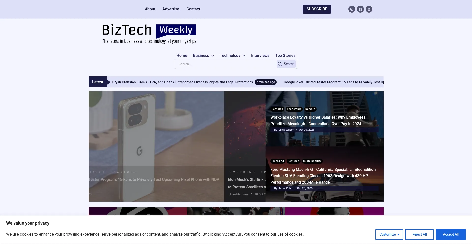 The website implements cookie consent mechanisms in compliance with privacy regulations such as GDPR or CCPA. This demonstrates that biztechweekly.com adheres to data protection standards and provides users with control over personal data collection practices.