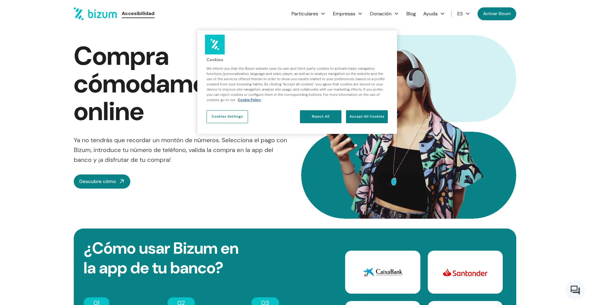 The website implements cookie consent mechanisms in compliance with privacy regulations such as GDPR or CCPA. This demonstrates that bizum.es adheres to data protection standards and provides users with control over personal data collection practices.