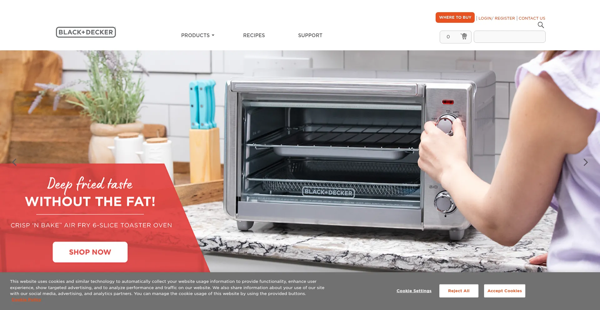 The website implements cookie consent mechanisms in compliance with privacy regulations such as GDPR or CCPA. This demonstrates that blackanddeckerappliances.com adheres to data protection standards and provides users with control over personal data collection practices.