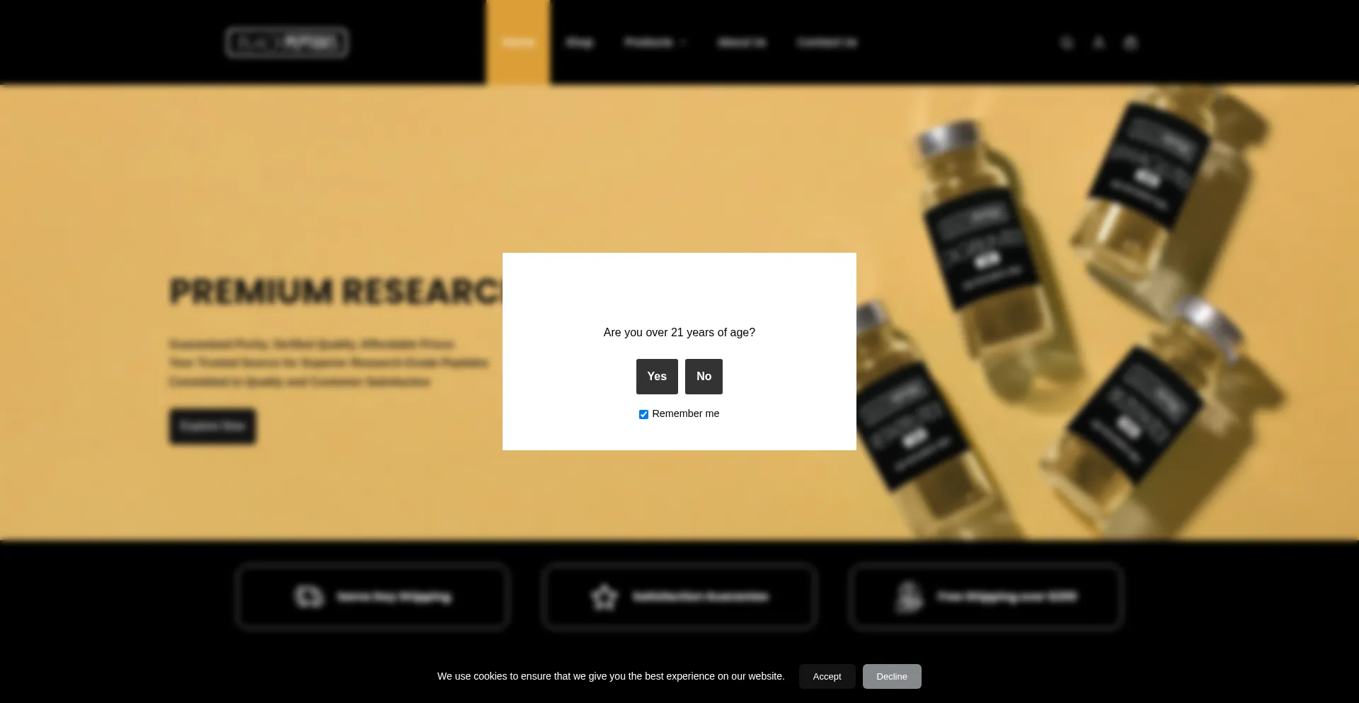The website implements cookie consent mechanisms in compliance with privacy regulations such as GDPR or CCPA. This demonstrates that blackpeptides.com adheres to data protection standards and provides users with control over personal data collection practices.