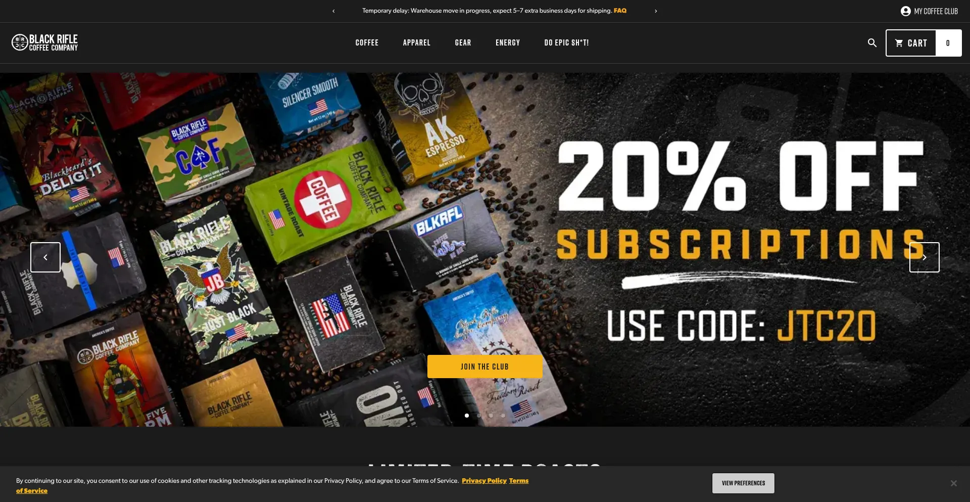 Veteran-founded Black Rifle Coffee Company delivers premium small-batch coffee, gear, and unapologetic American values. Join the mission, fuel your day.