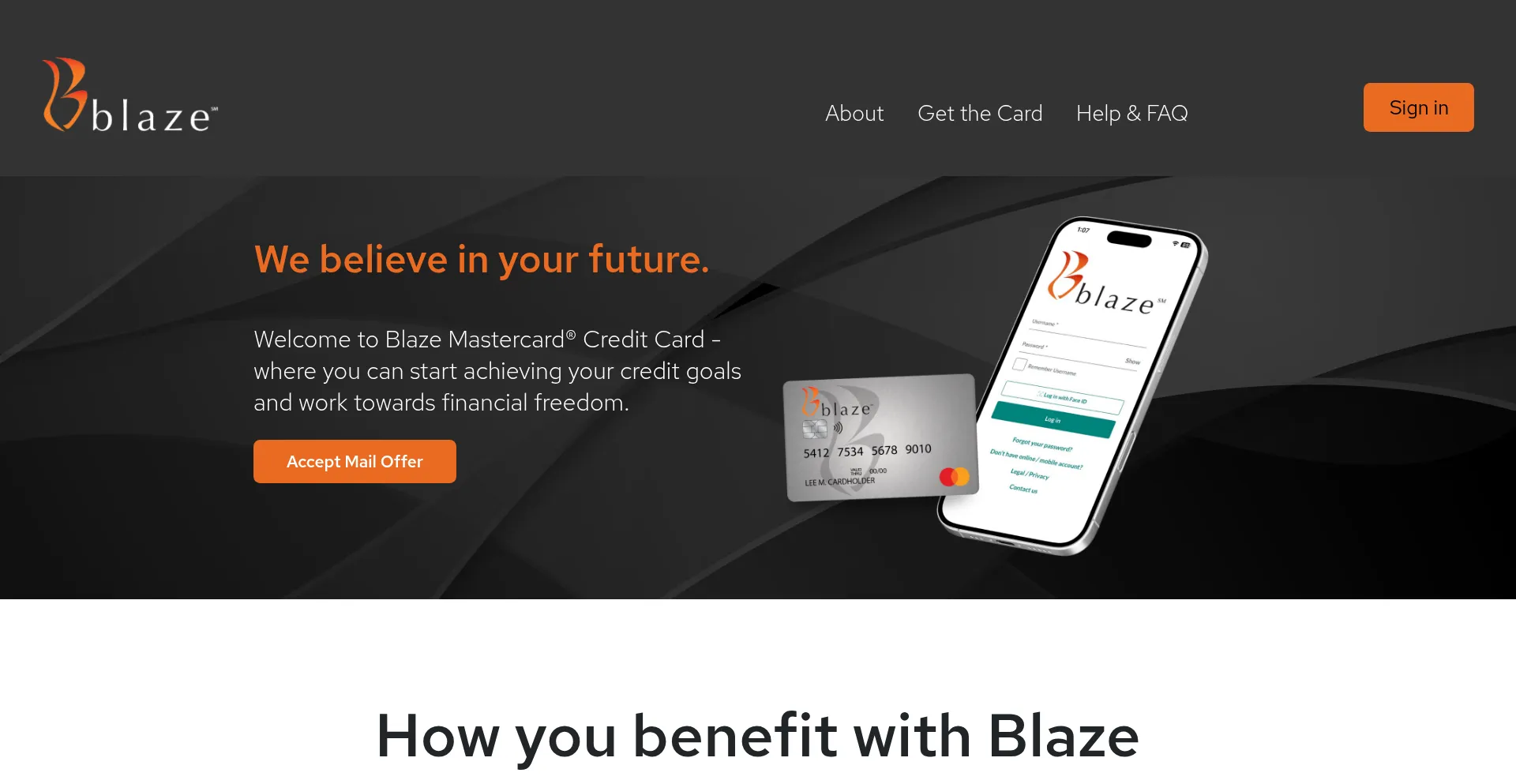 Welcome to Blaze Mastercard Credit Card - where you can start achieving your credit goals and work towards financial freedom.