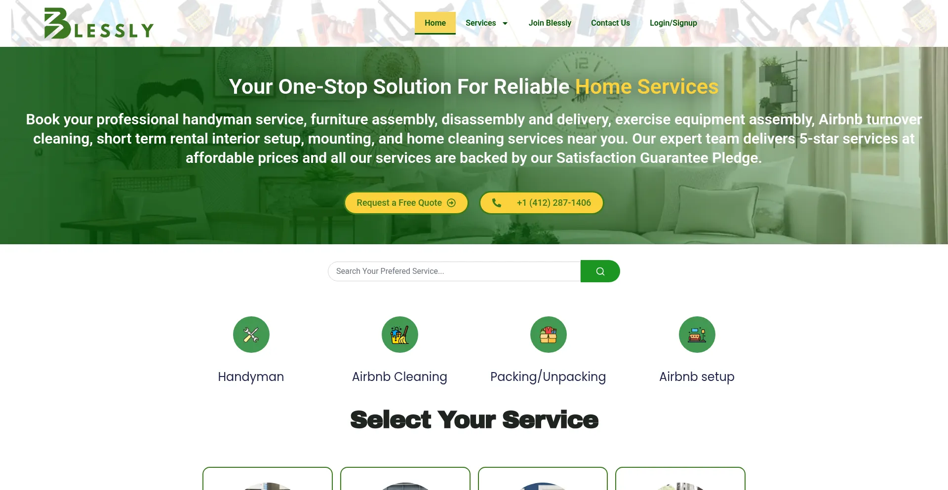 Blessly offers local handyman service & house cleaning services including furniture assembly, gym equipment assembly, mounting, STR cleaning and more. Book Now