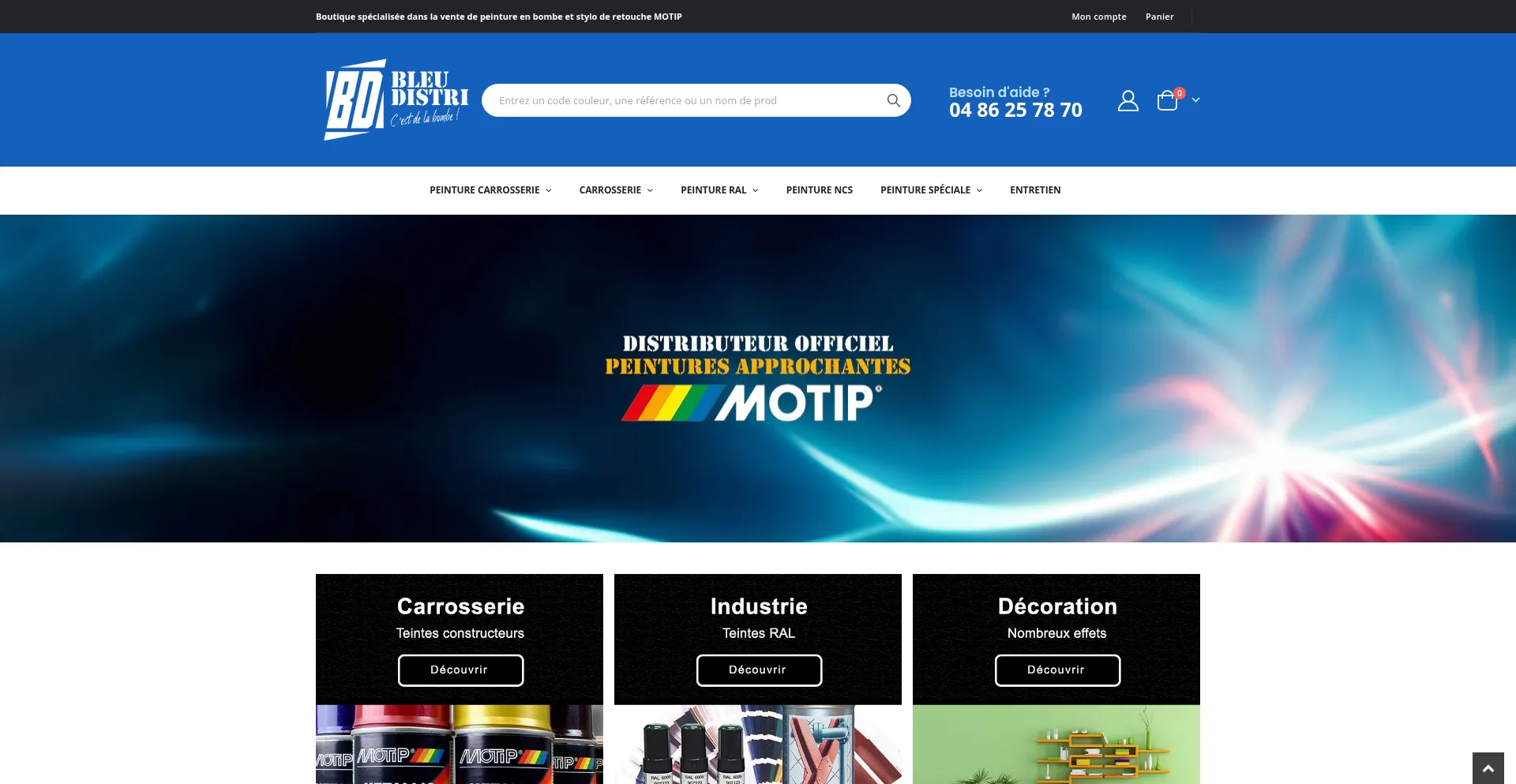 Bleu-distri vous propose la peinture carrosserie MOTIP, Déco et RAL en aérosol et stylo retouche.