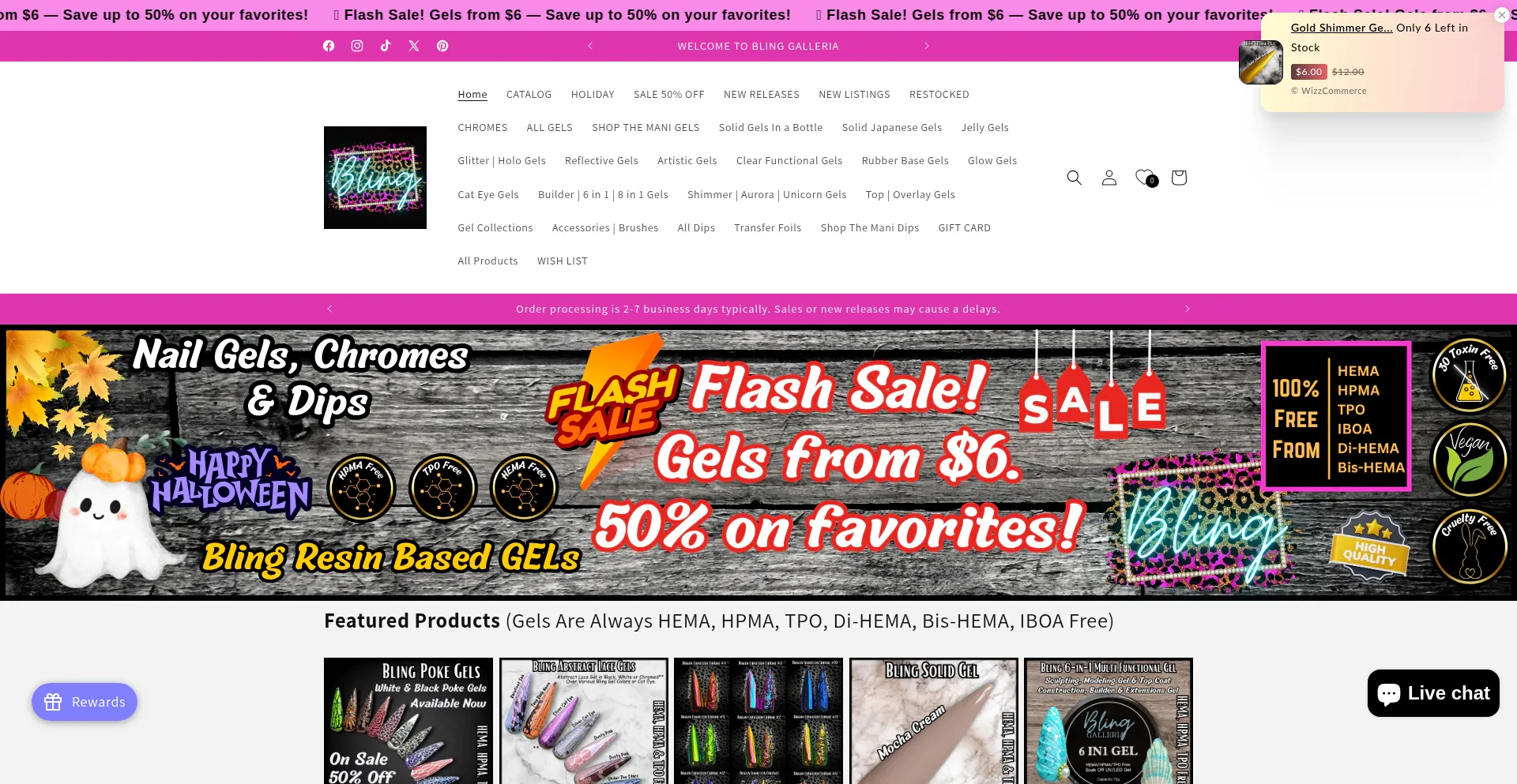 The blinggalleria.com website utilizes free e-commerce platform solutions, which may indicate cost-conscious operations but could also suggest limitations in security features, customer support, or advanced functionality compared to enterprise-grade solutions.