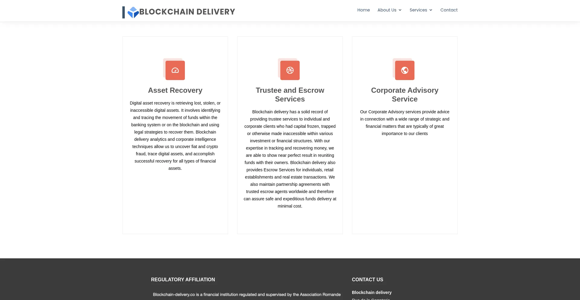 The blockchain-delivery.co website references cryptocurrency transactions or educational content related to digital assets such as Bitcoin, Ethereum, or other blockchain-based currencies. Users should exercise caution as cryptocurrency transactions are irreversible and the decentralized nature of these assets provides limited recourse for fraudulent activities.
