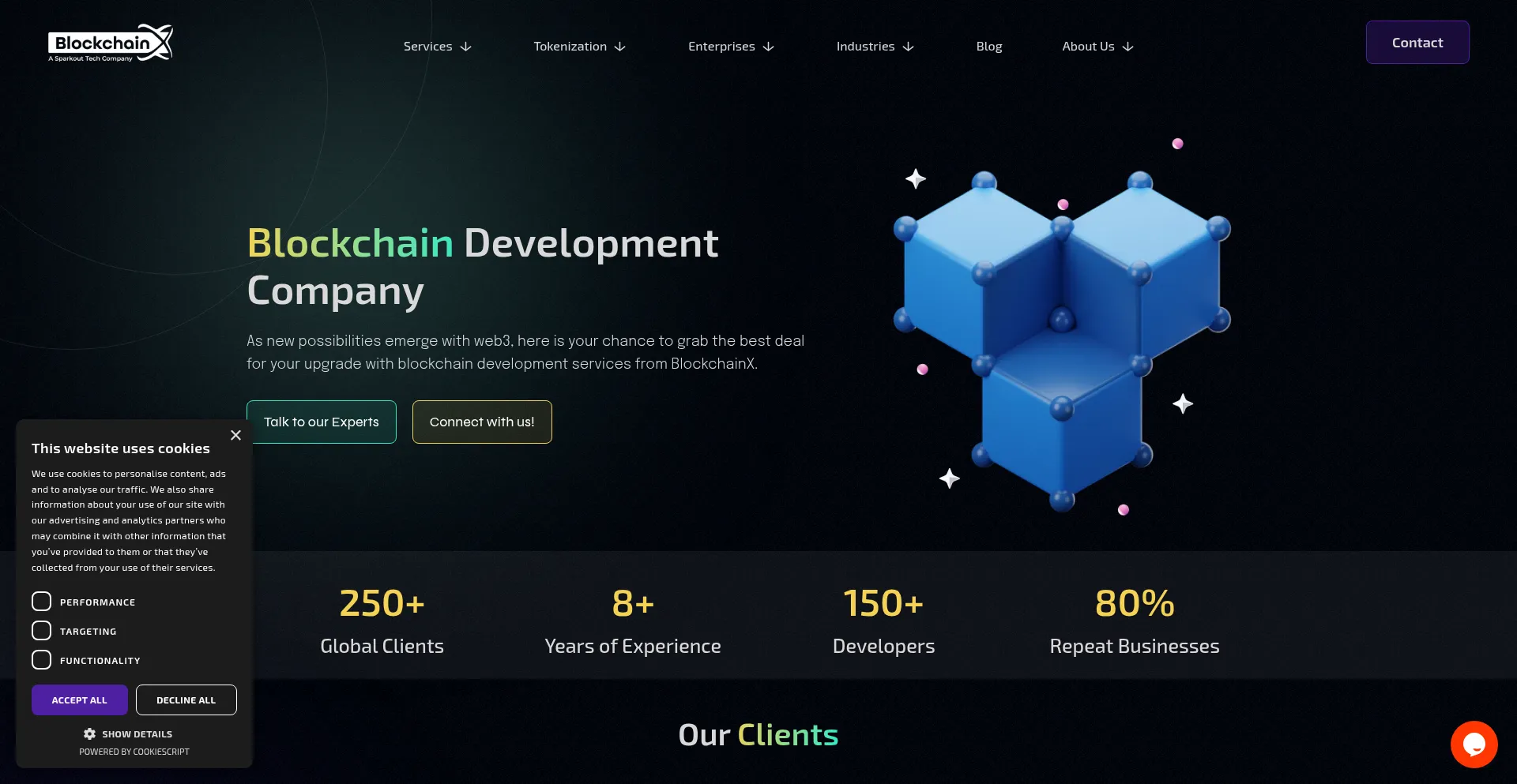 The website implements cookie consent mechanisms in compliance with privacy regulations such as GDPR or CCPA. This demonstrates that blockchainx.tech adheres to data protection standards and provides users with control over personal data collection practices.