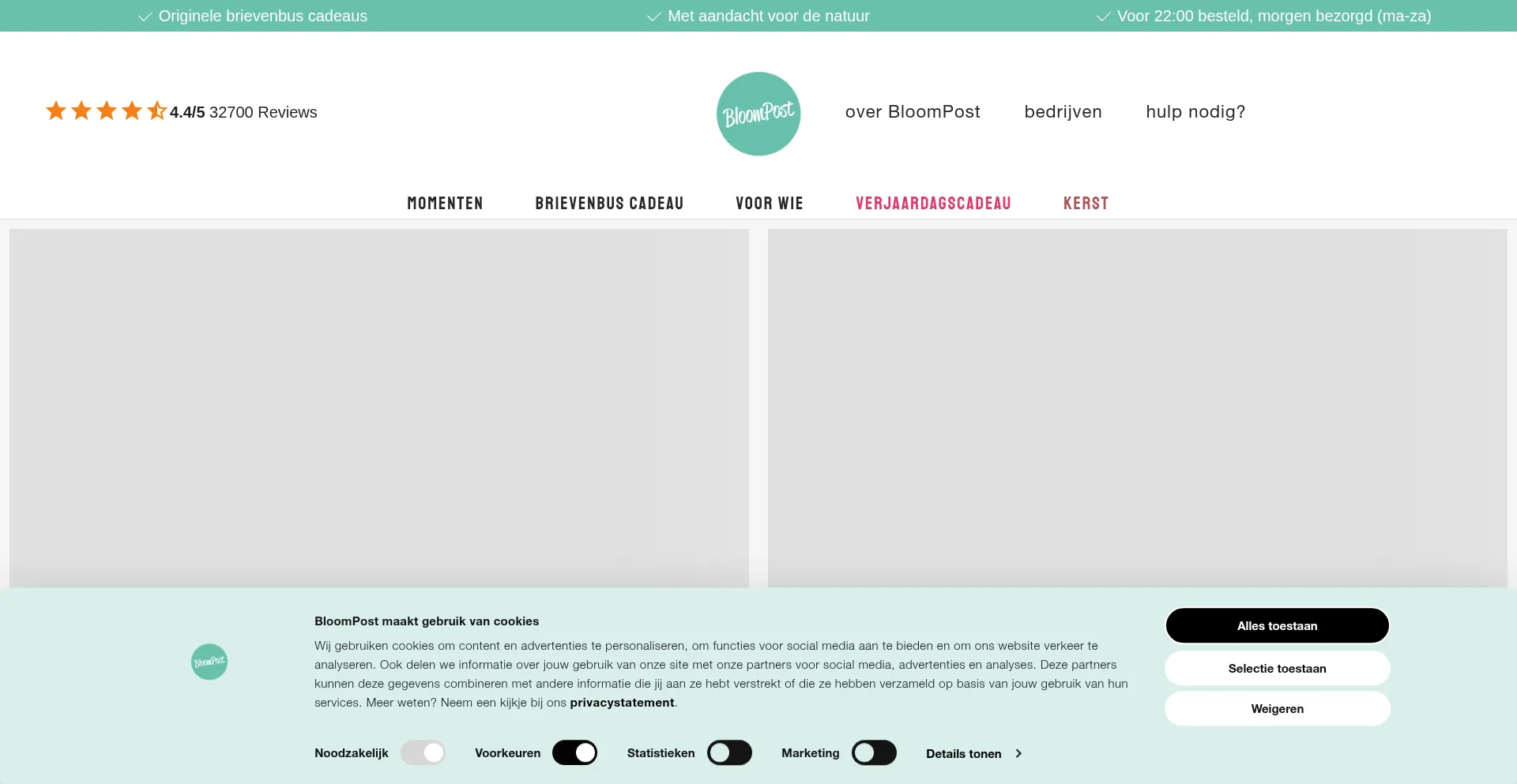 The website implements cookie consent mechanisms in compliance with privacy regulations such as GDPR or CCPA. This demonstrates that bloompost.nl adheres to data protection standards and provides users with control over personal data collection practices.