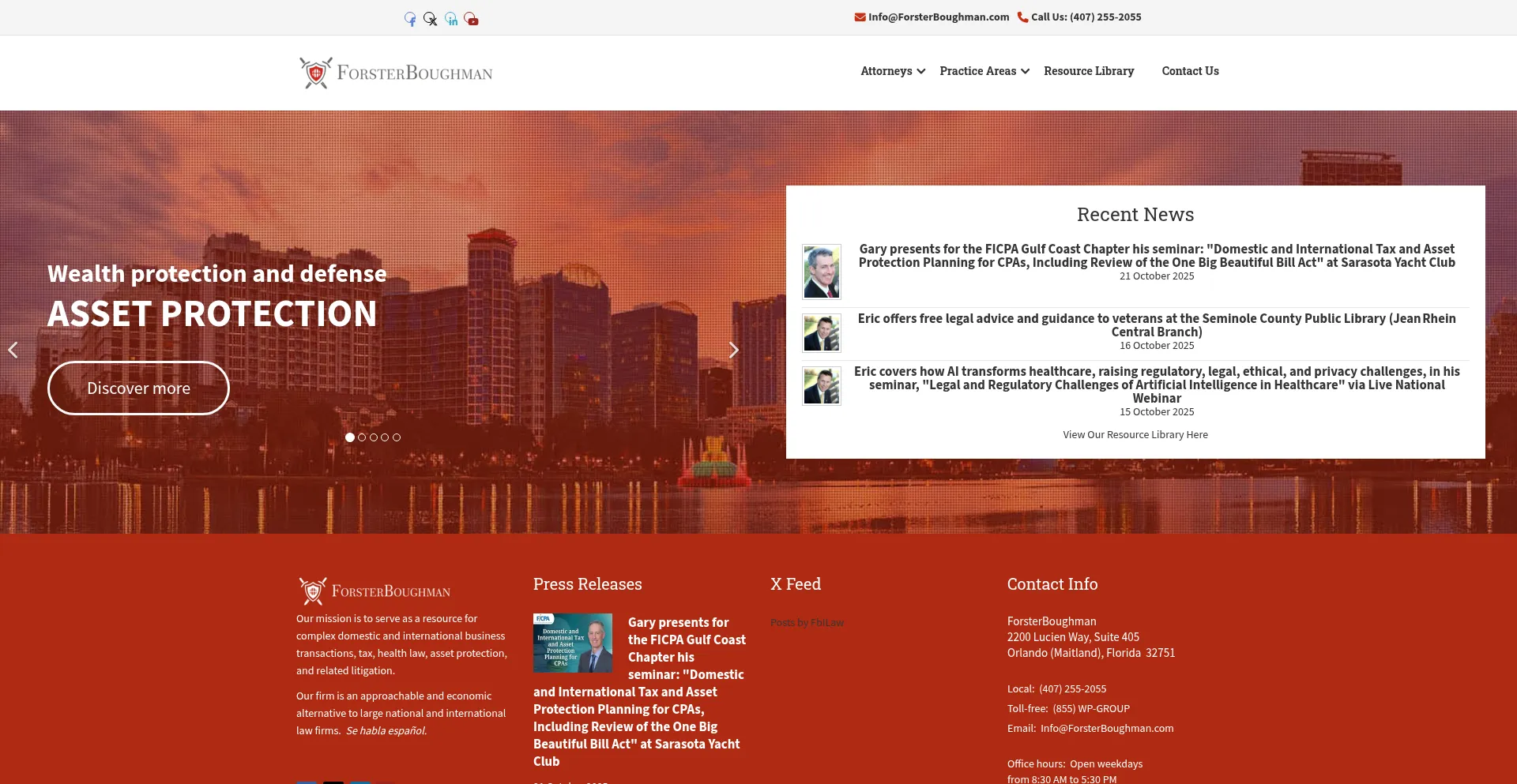 ForsterBoughman serves as a resource for complex domestic and international business transactions, tax, health law, asset protection, and related litigation. Our firm is an app...