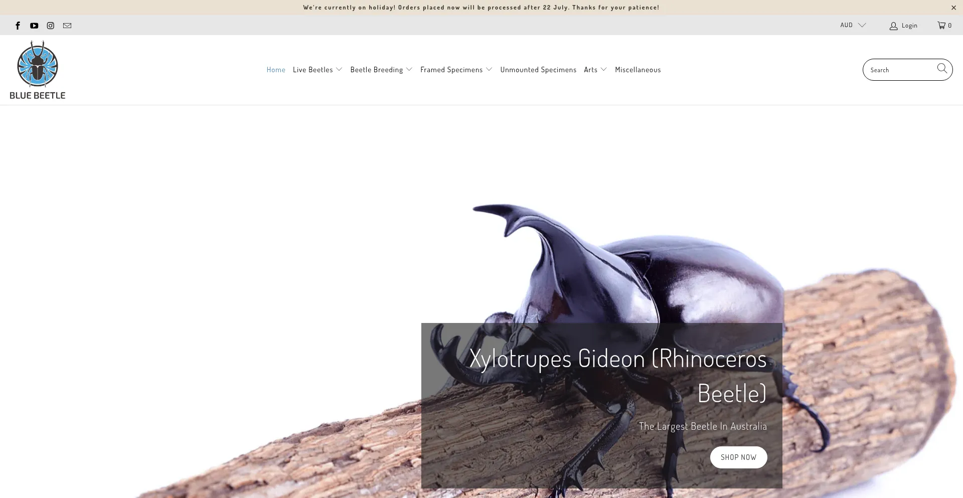 BlueBeetle is the largest supplier of Live Beetles (Rainbow Stag Beetle, King Stag Beetle) in Australia, we also specialise in entomology frames (butterflies, moths, Beetles etc...