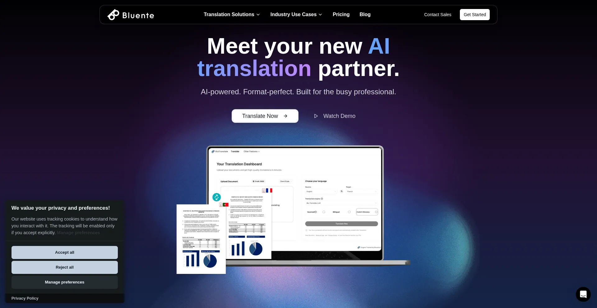 Transform your business with Bluente's AI-powered translation solutions. Get fast, accurate translations in 2 minutes while preserving your document format. Support for 120+ lan...