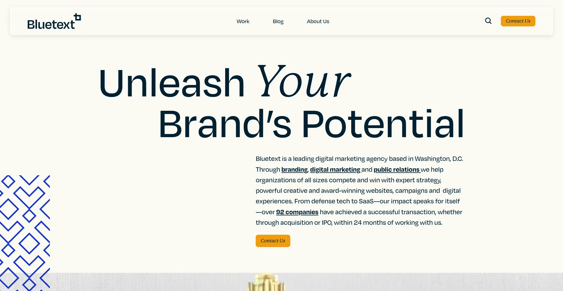 Bluetext is a top digital marketing agency based in Washington, DC. We help our clients win through branding, websites, campaigns & public relations.