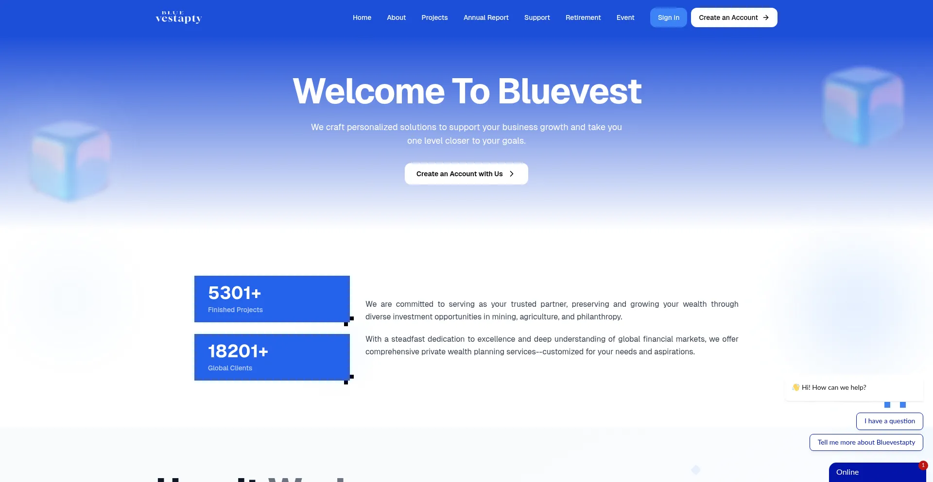 The bluevestapty.club website provides financial services including investment management, wealth advisory, or financial planning solutions. Services may encompass portfolio management, investment opportunities, financial consulting, or asset growth strategies for individual and institutional clients.