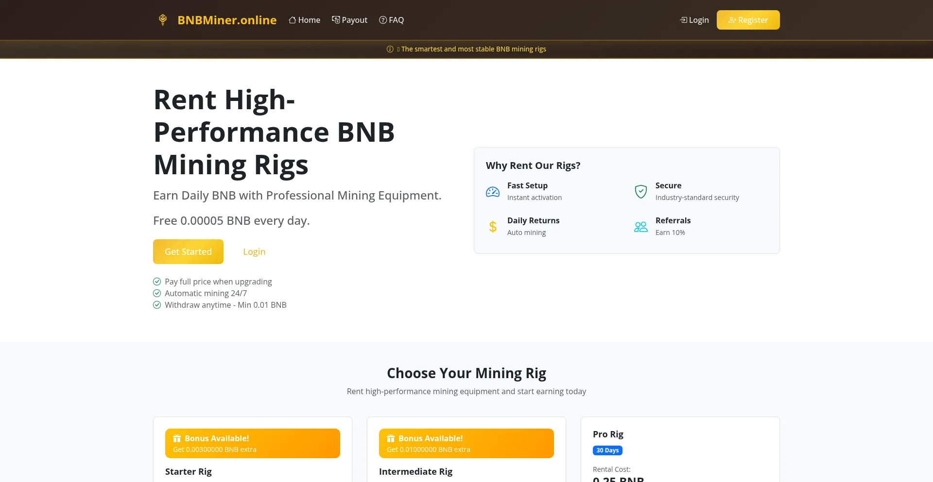 BNBMiner.online - Rent High-Performance BNB Mining Rigs