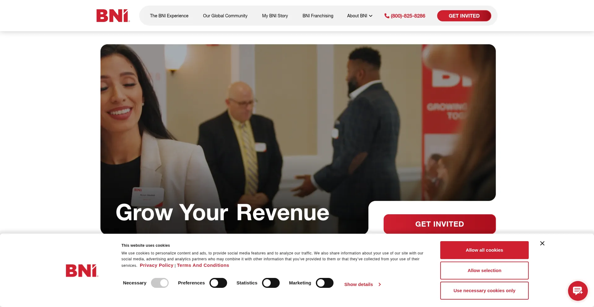 The website implements cookie consent mechanisms in compliance with privacy regulations such as GDPR or CCPA. This demonstrates that bni.com adheres to data protection standards and provides users with control over personal data collection practices.
