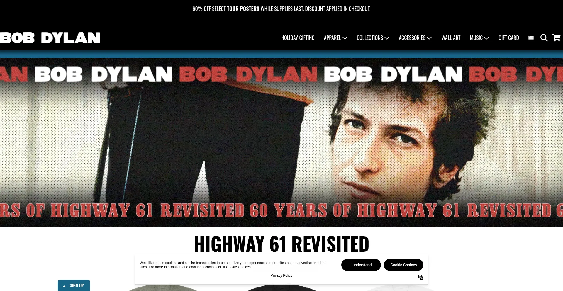 Shop exclusive merch and apparel from the Official Bob Dylan Store. Hoodies, tees, vinyl, posters, accessories, and more.