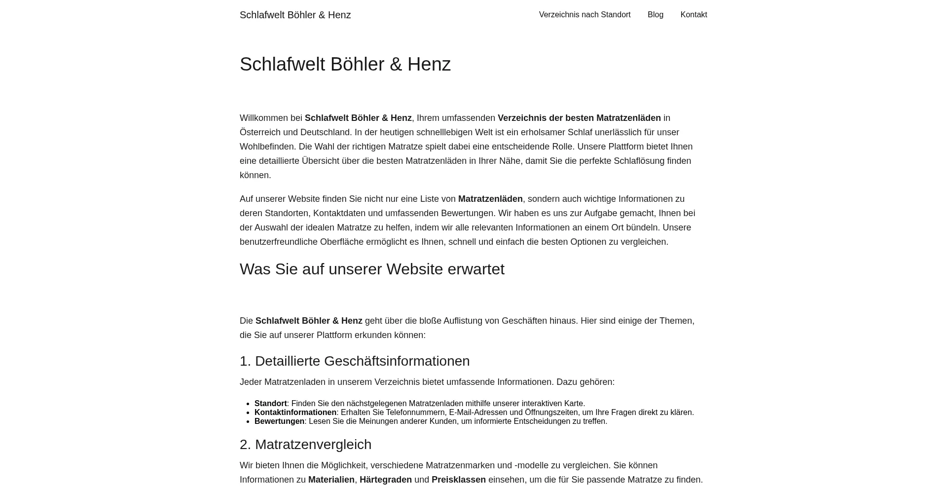 Schlafwelt Böhler & Henz – Verzeichnis der besten Matratzenläden in Österreich und Deutschland. Standort, Kontakt und Bewertungen.