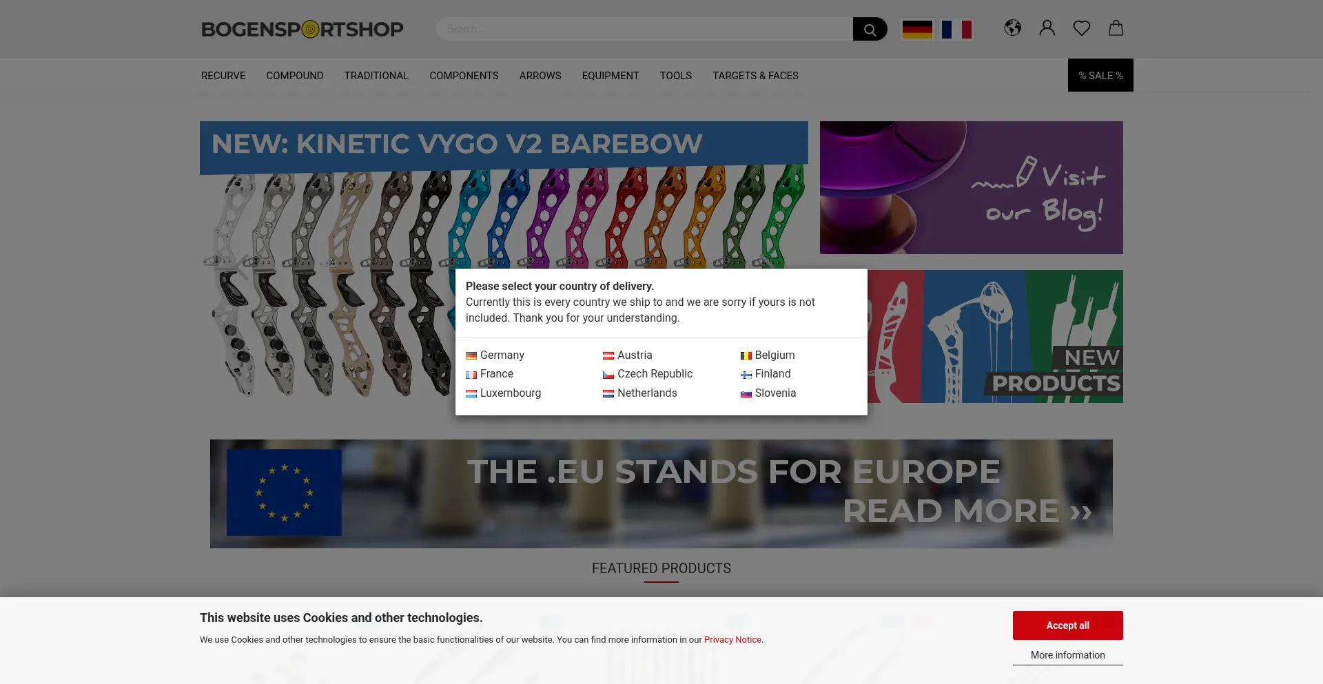 The website implements cookie consent mechanisms in compliance with privacy regulations such as GDPR or CCPA. This demonstrates that bogensportshop.eu adheres to data protection standards and provides users with control over personal data collection practices.