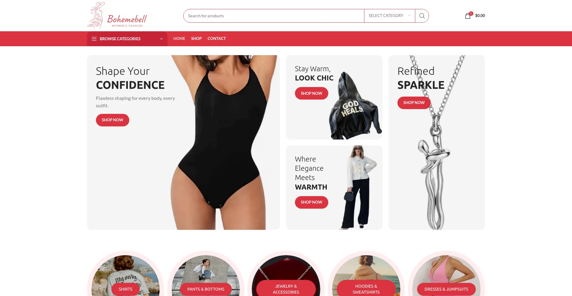 Analysis indicates that bohemebell.com operates as an e-commerce platform facilitating online transactions for goods or services. The website implements shopping cart functionality, payment processing systems, and product catalog features typical of commercial retail operations.