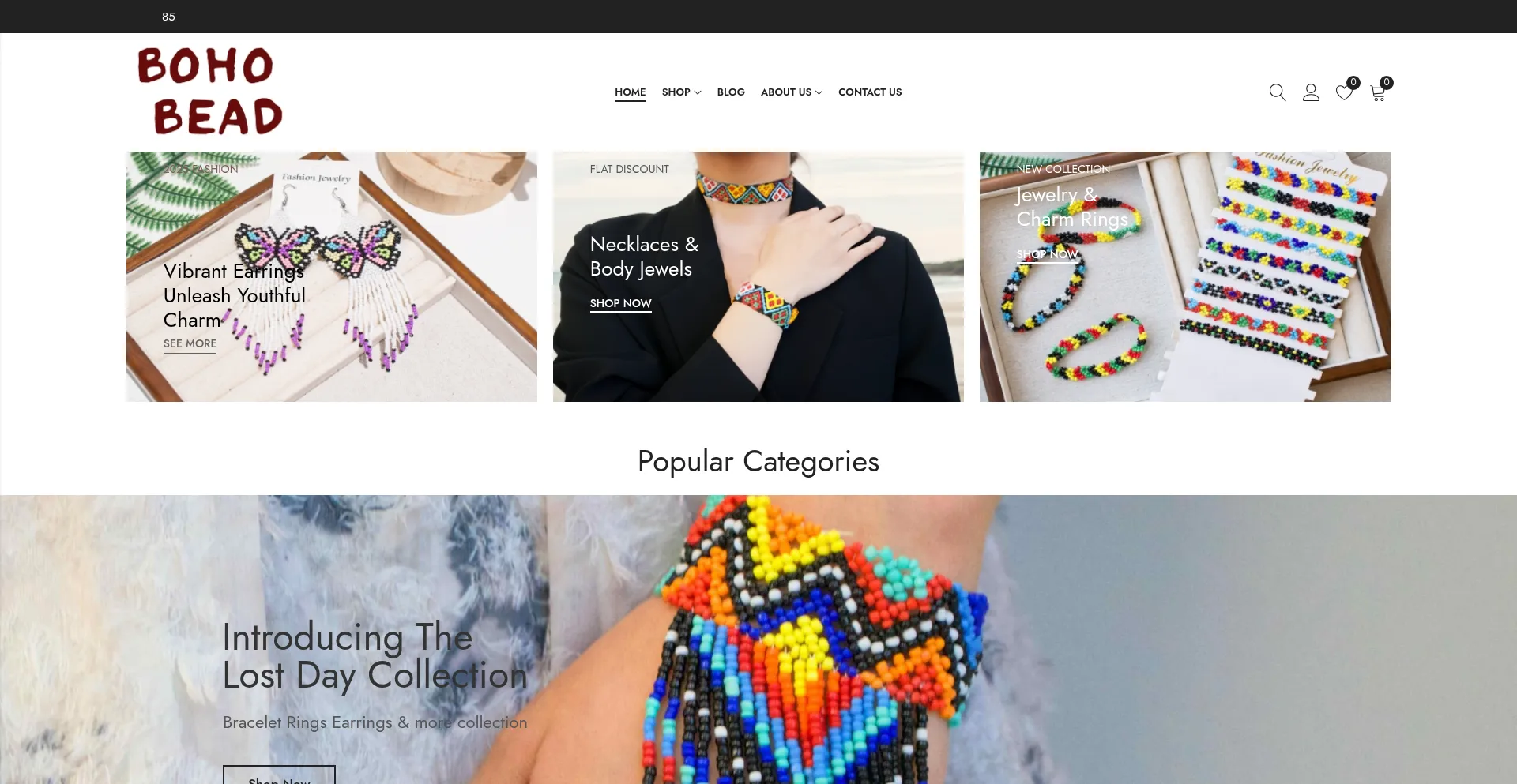 bohobead.com uses Bootstrap, a widely-adopted open-source framework for responsive web development. Bootstrap enables efficient creation of mobile-friendly interfaces through standardized components and styling.