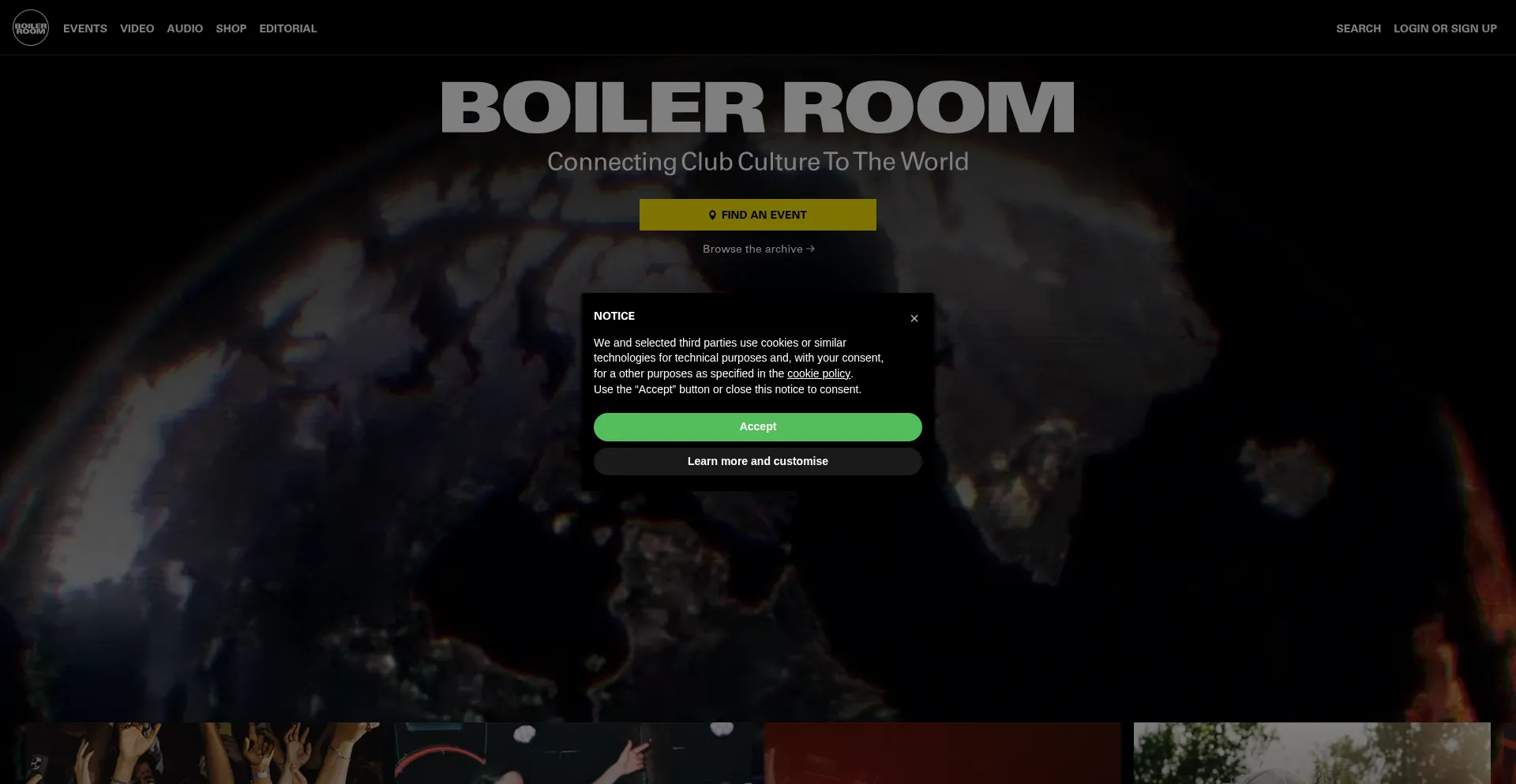 The website implements cookie consent mechanisms in compliance with privacy regulations such as GDPR or CCPA. This demonstrates that boilerroom.tv adheres to data protection standards and provides users with control over personal data collection practices.
