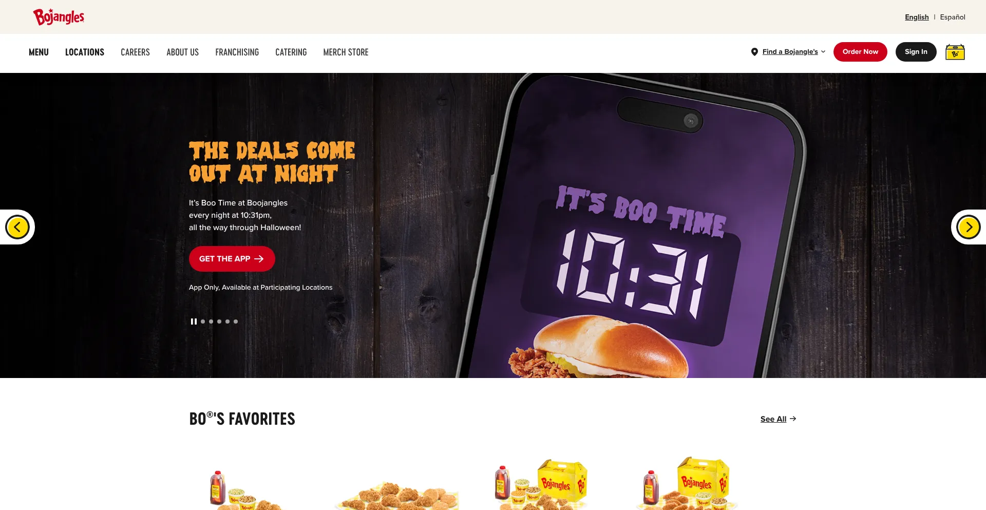 The bojangles.com website offers a mobile application for Android devices, indicating expanded platform presence beyond web-based services.