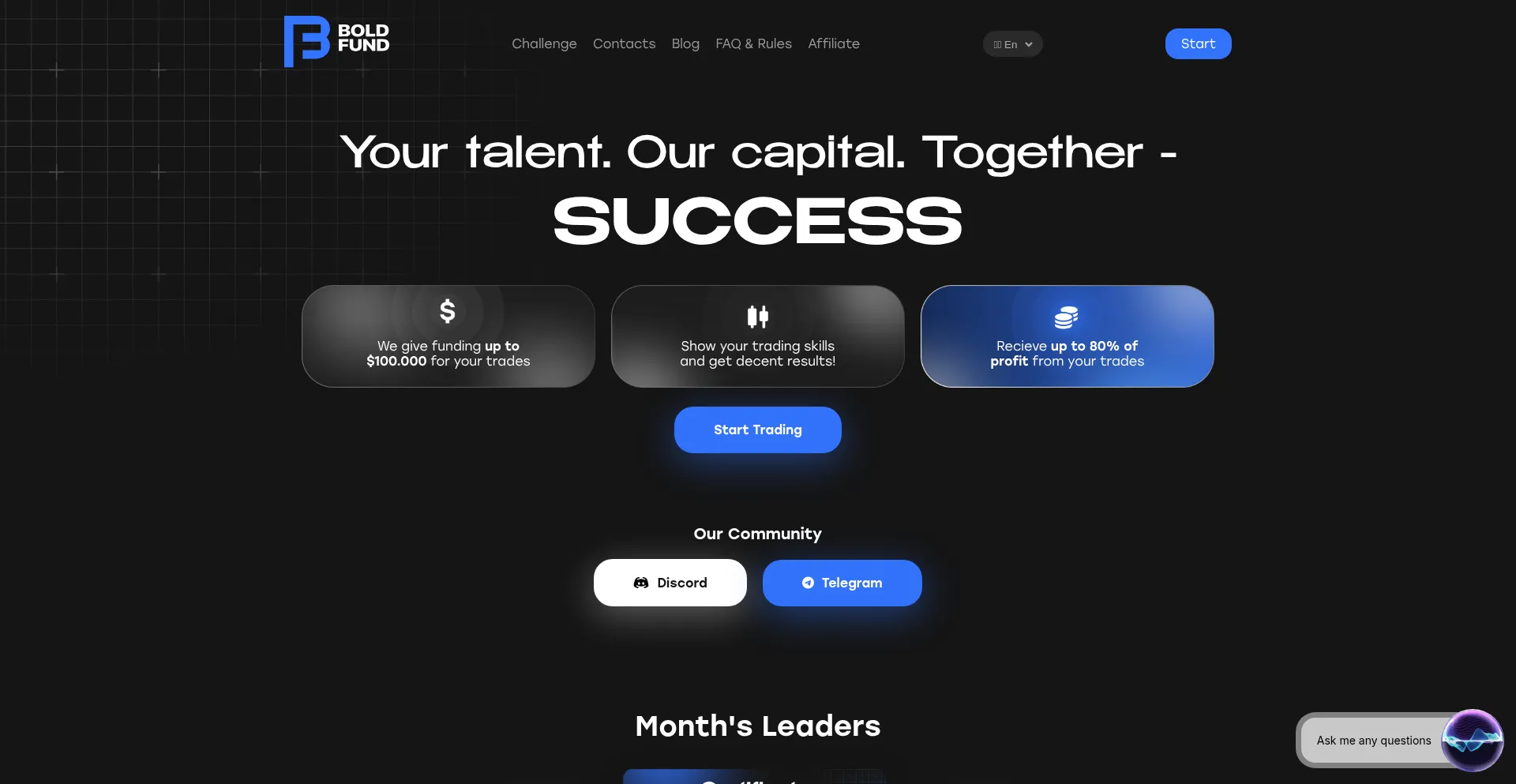 BOLD FUND - we invest in strong traders! If you want to apply to become BOLD FUND trader, keep up with the challenge rules. We risk, while you receive up to 80% of profit!