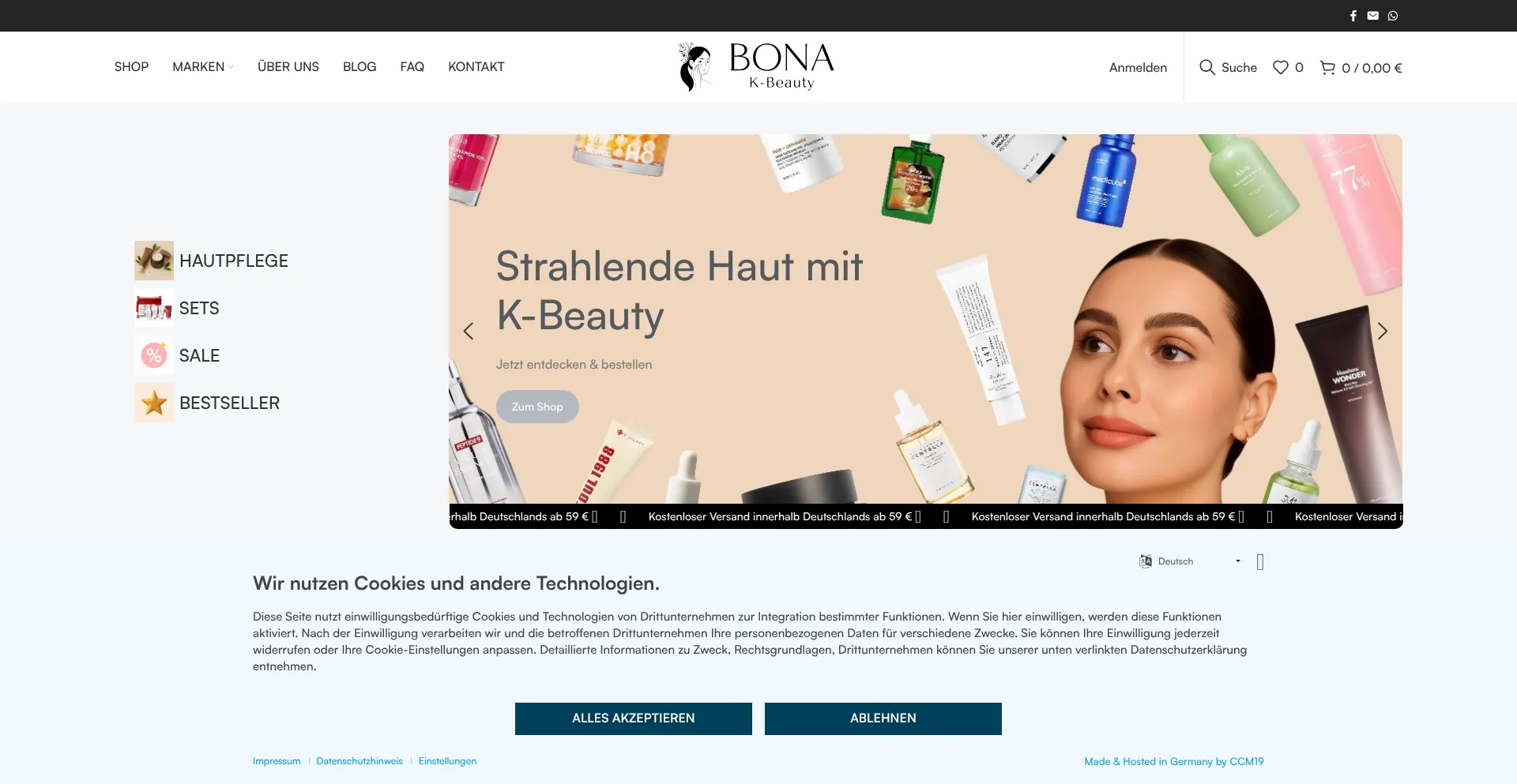 Analysis indicates that bonakbeauty.de operates as an e-commerce platform facilitating online transactions for goods or services. The website implements shopping cart functionality, payment processing systems, and product catalog features typical of commercial retail operations.