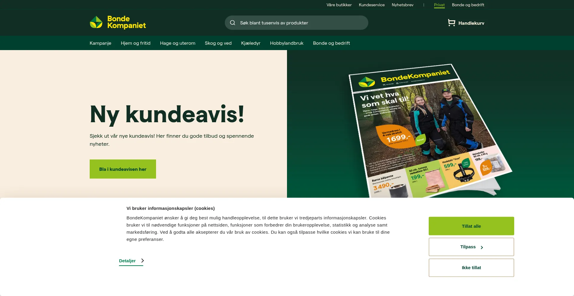 The website implements cookie consent mechanisms in compliance with privacy regulations such as GDPR or CCPA. This demonstrates that bondekompaniet.no adheres to data protection standards and provides users with control over personal data collection practices.
