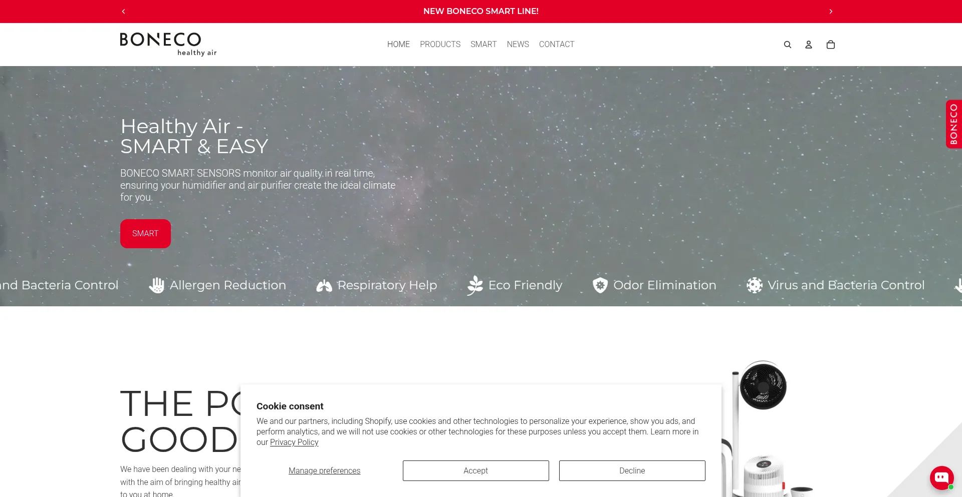 Our analyzer determines that website boneco.com is using Shopify CMS. Shopify is a popular e-commerce platform, powering around 4.4% of websites globally.