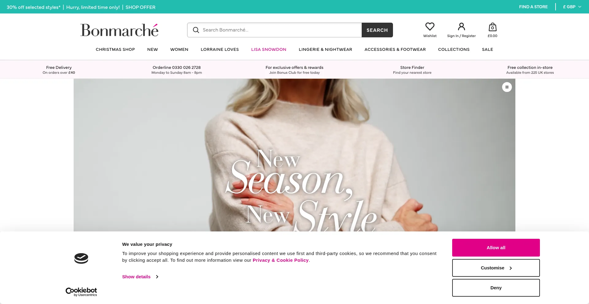 The website implements cookie consent mechanisms in compliance with privacy regulations such as GDPR or CCPA. This demonstrates that bonmarche.co.uk adheres to data protection standards and provides users with control over personal data collection practices.