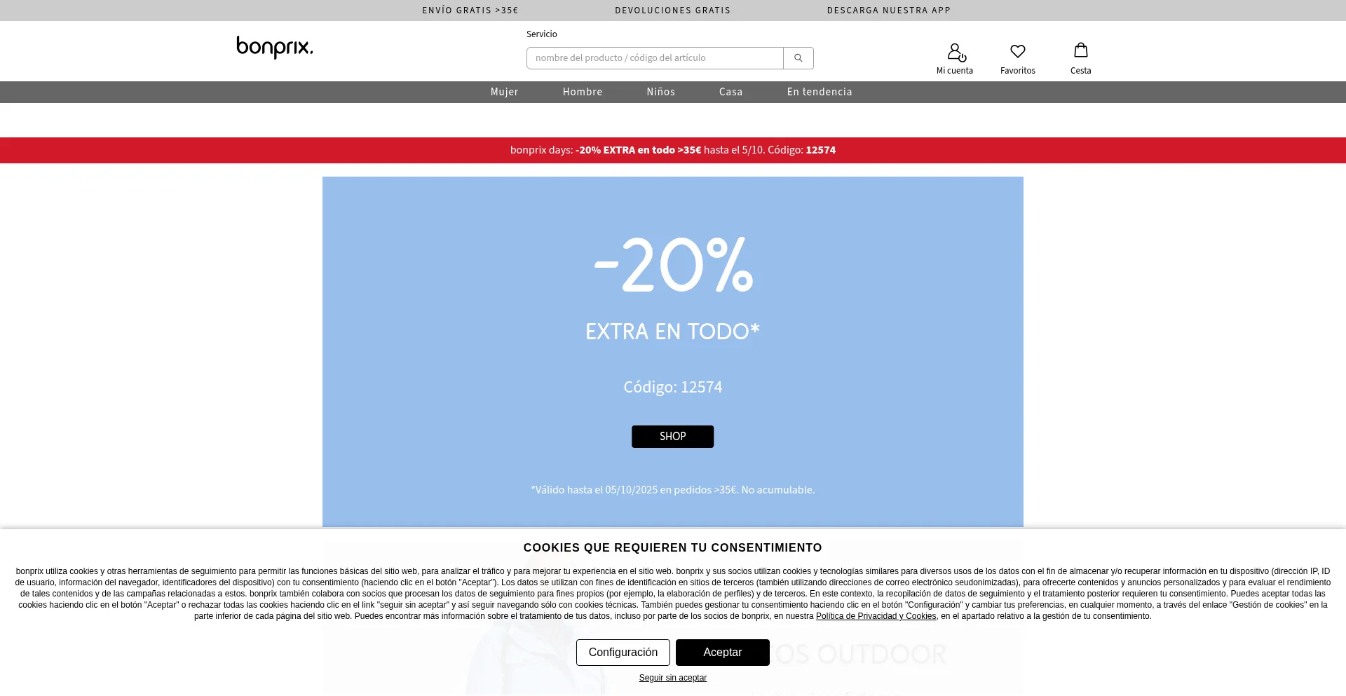 The website implements cookie consent mechanisms in compliance with privacy regulations such as GDPR or CCPA. This demonstrates that bonprix.es adheres to data protection standards and provides users with control over personal data collection practices.