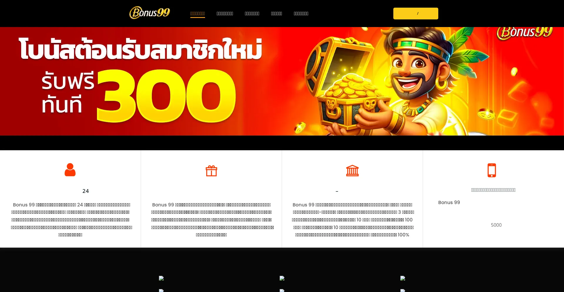 Bonus99 สมาชิกใหม่ลงทะเบียนรับฟรี 300 ไม่ต้องแชร์ มีเกมสล็อตมากกว่า 200...