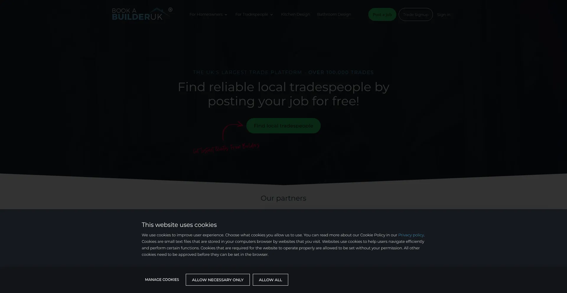 The website implements cookie consent mechanisms in compliance with privacy regulations such as GDPR or CCPA. This demonstrates that bookabuilderuk.com adheres to data protection standards and provides users with control over personal data collection practices.