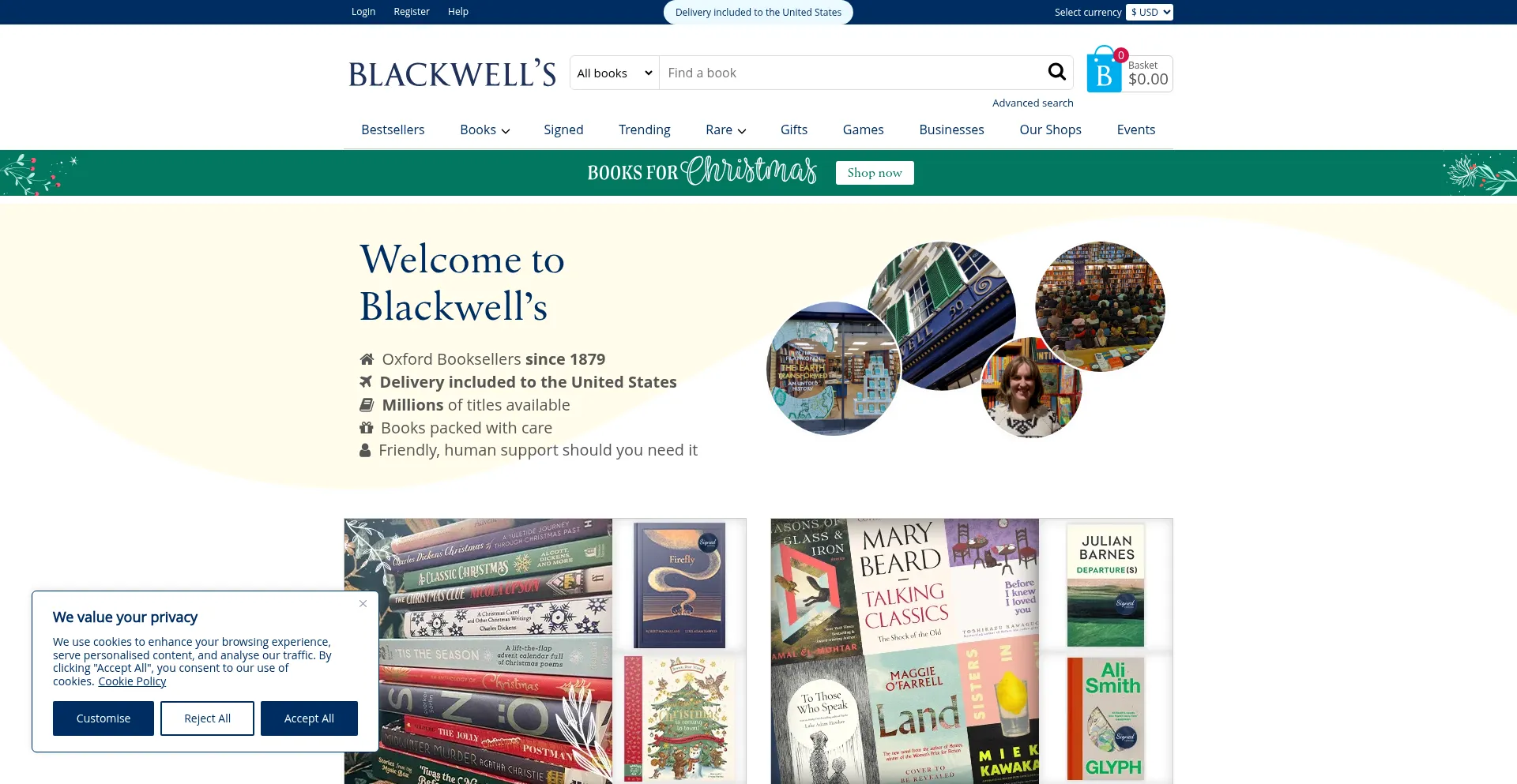 The website implements cookie consent mechanisms in compliance with privacy regulations such as GDPR or CCPA. This demonstrates that bookshop.blackwell.co.uk adheres to data protection standards and provides users with control over personal data collection practices.