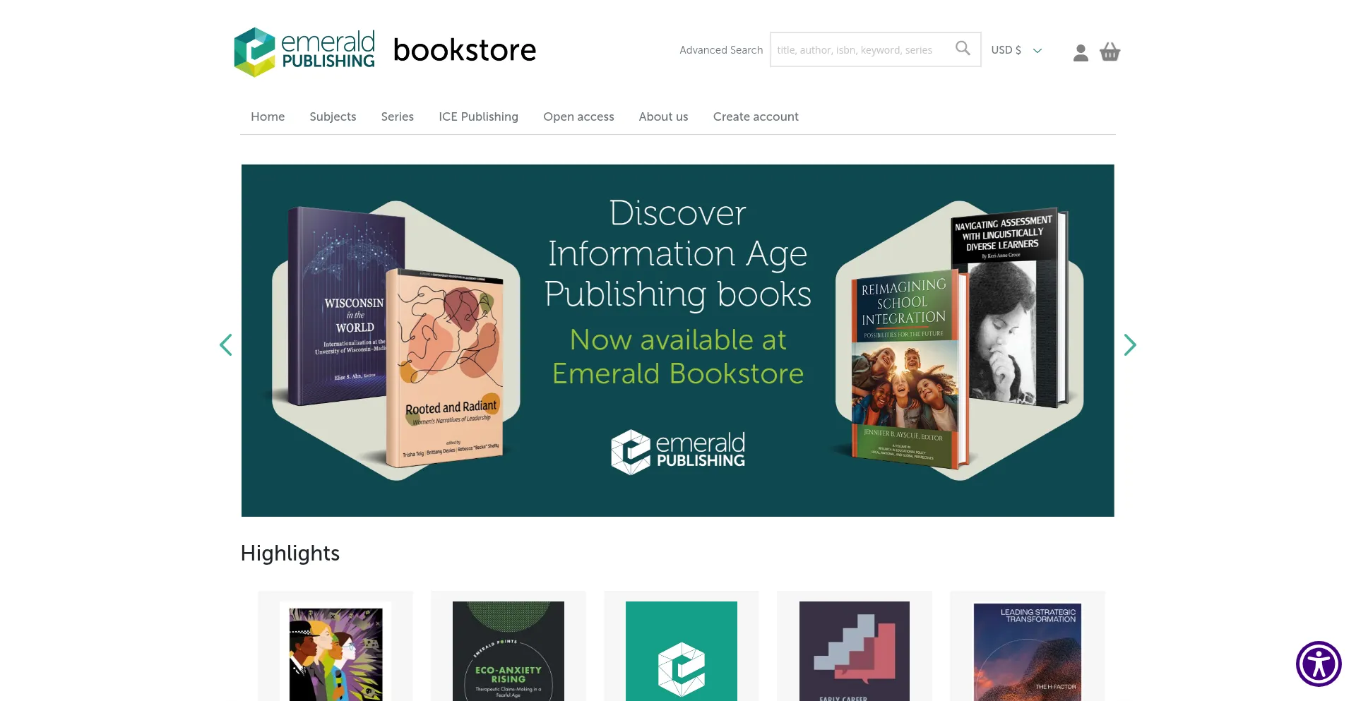 Analysis indicates that bookstore.emerald.com operates as an e-commerce platform facilitating online transactions for goods or services. The website implements shopping cart functionality, payment processing systems, and product catalog features typical of commercial retail operations.