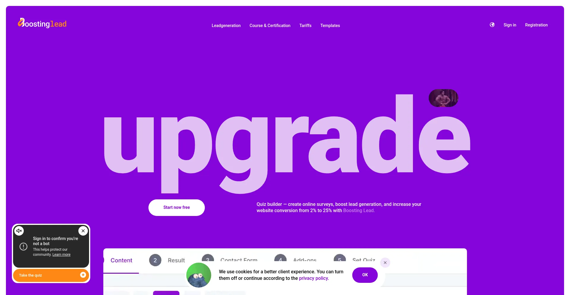 Quiz builder for lead generation Boosting Lead ☝ Create a quiz online in 10 minutes ⚡️ Embed on your website, free subscription, 24/7 support