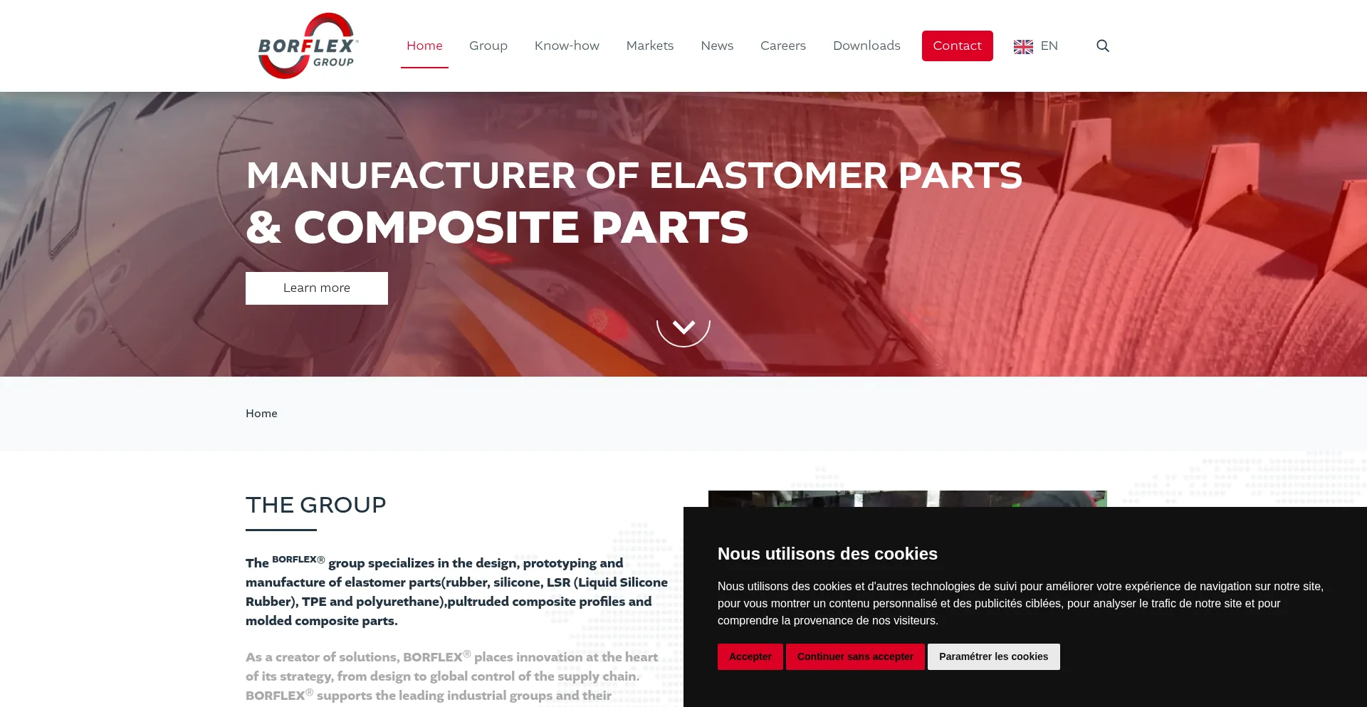 The BORFLEX® Group manufactures elastomer parts in rubber, silicone, LSR, TPE and polyurethane, as well as pultruded composite profiles and molded composite parts.