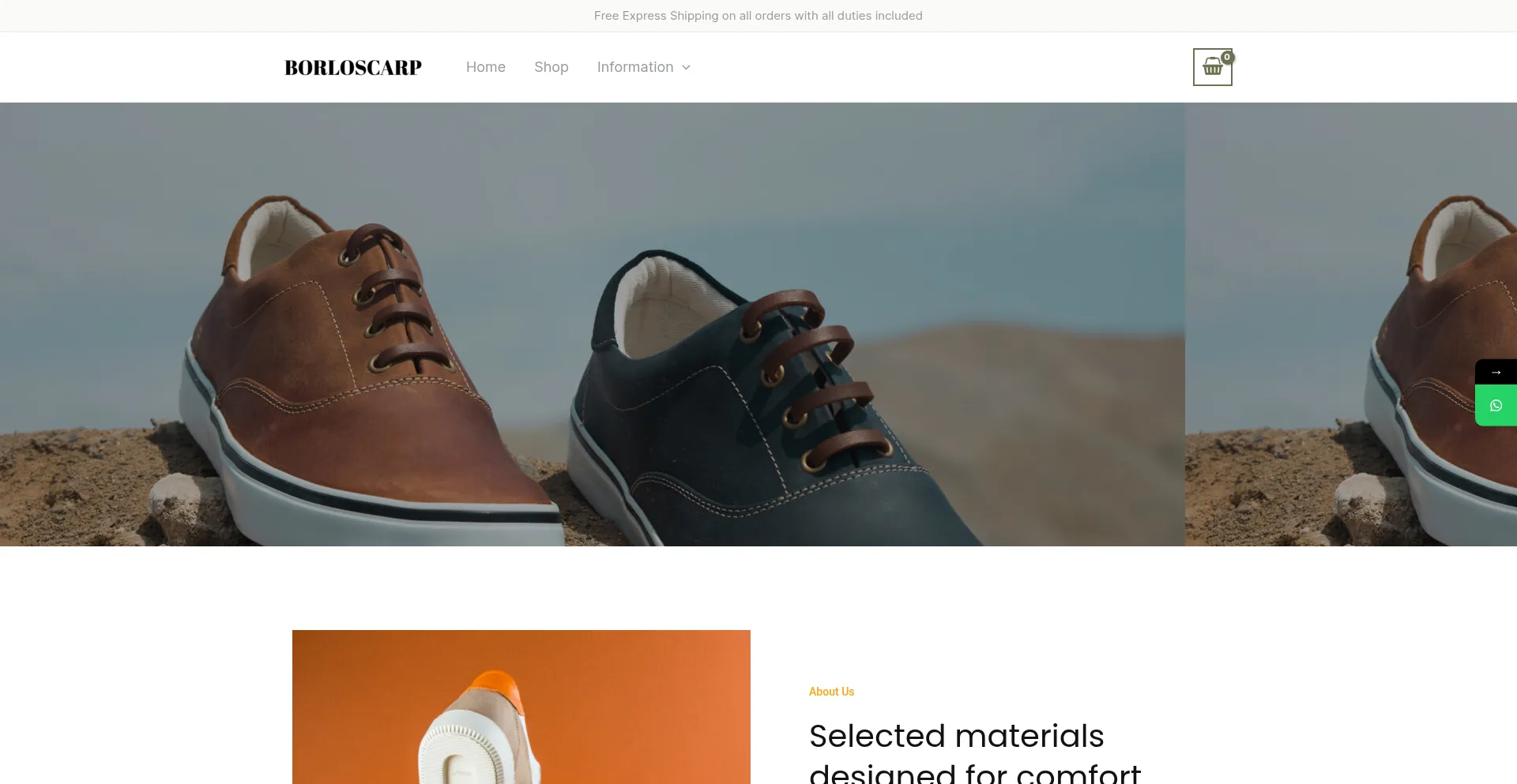 Analysis indicates that borloscarp.com operates as an e-commerce platform facilitating online transactions for goods or services. The website implements shopping cart functionality, payment processing systems, and product catalog features typical of commercial retail operations.