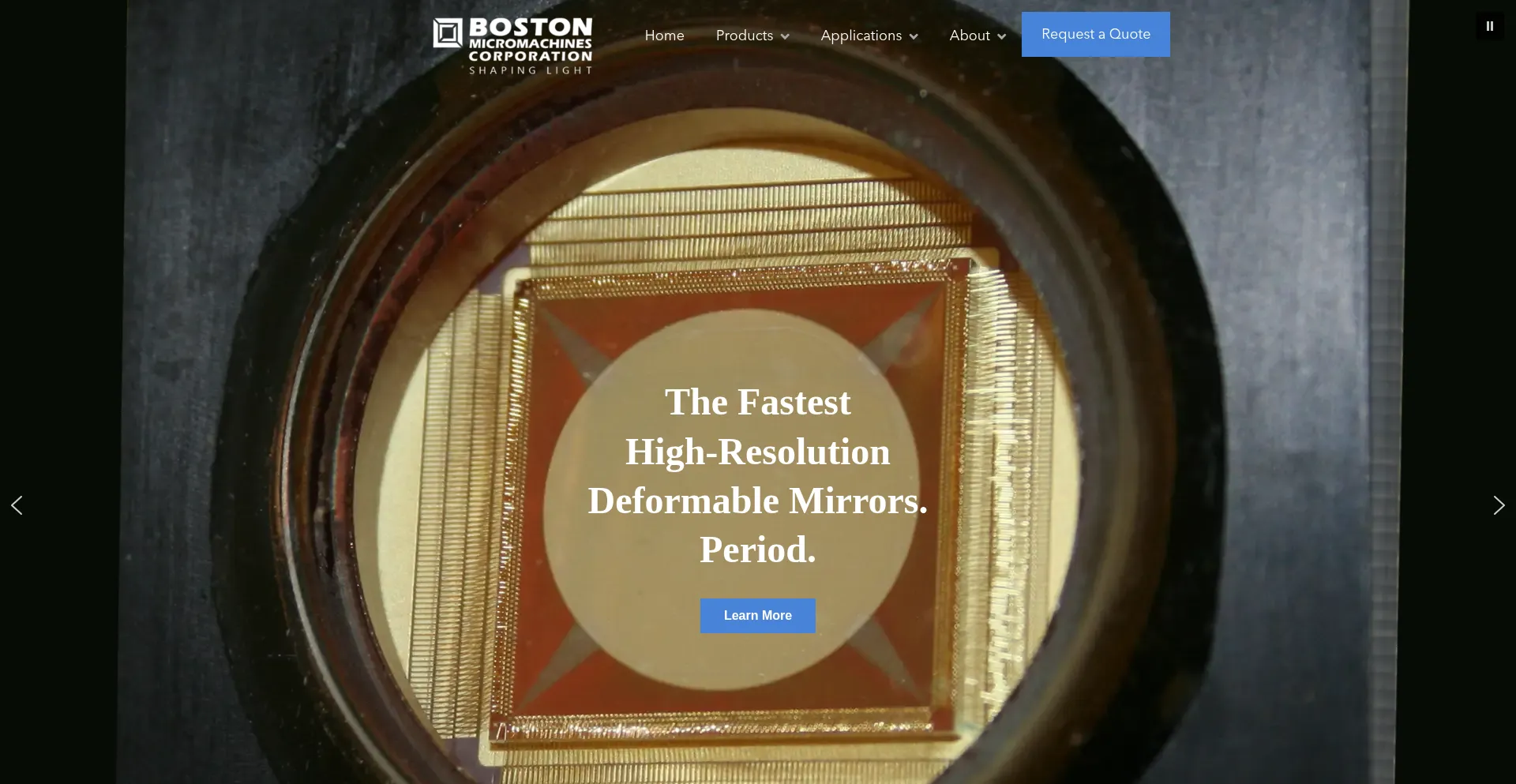 Boston Micromachines offers MEMS deformable mirrors and MEMS Grating Modulators for advanced adaptive optics and versatile broadband optical modulation.