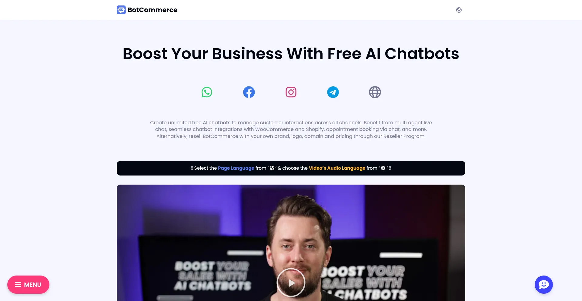 Create free AI chatbots for WhatsApp, Facebook, Instagram, Telegram, Shopify & WooCommerce. Automate your sales today!