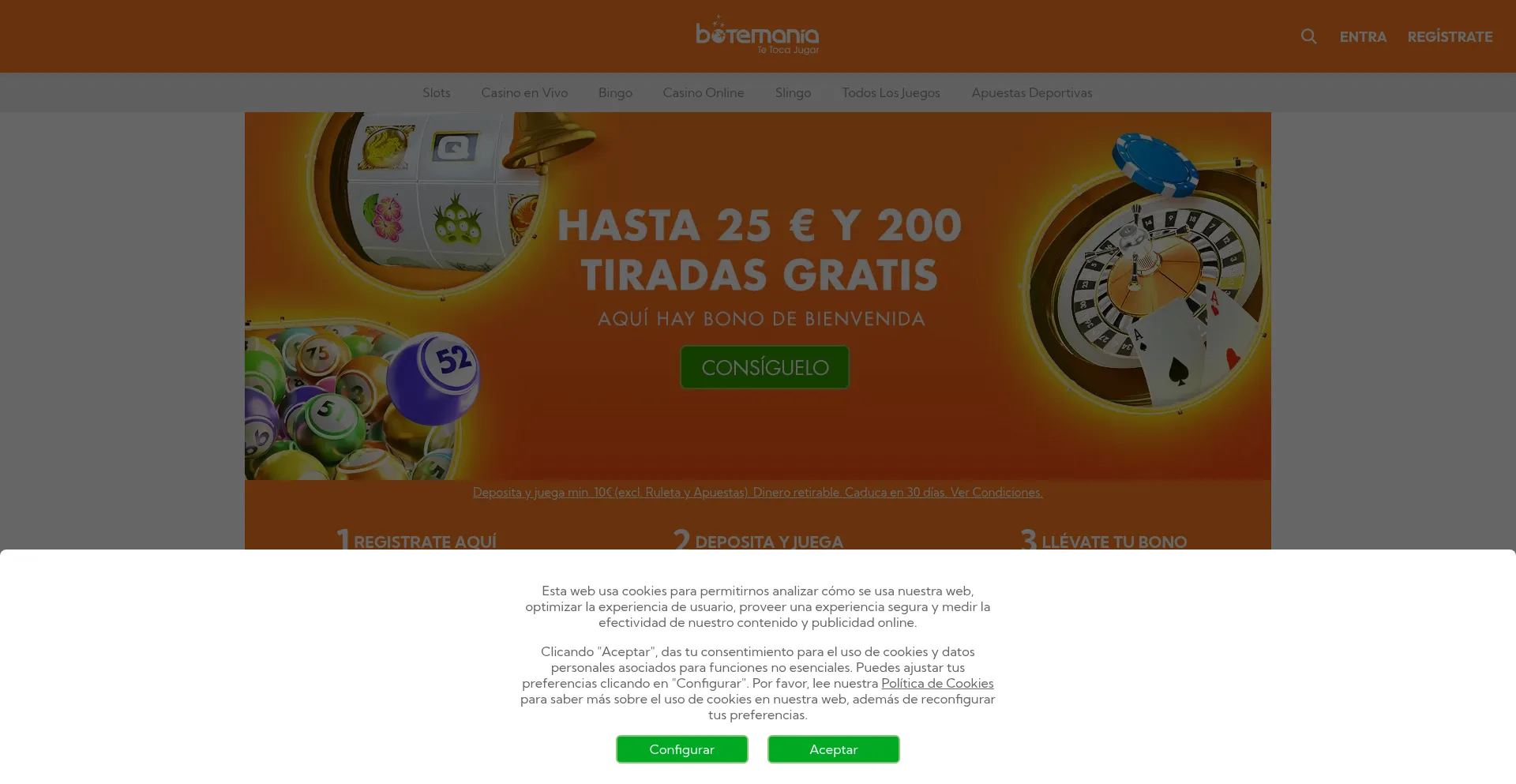 Botemania casino online en España. Más de 200 juegos en Slots, Bingo, Casino Online (Ruleta y Blackjack) y el mejor Casino en Vivo. Tiradas Gratis.