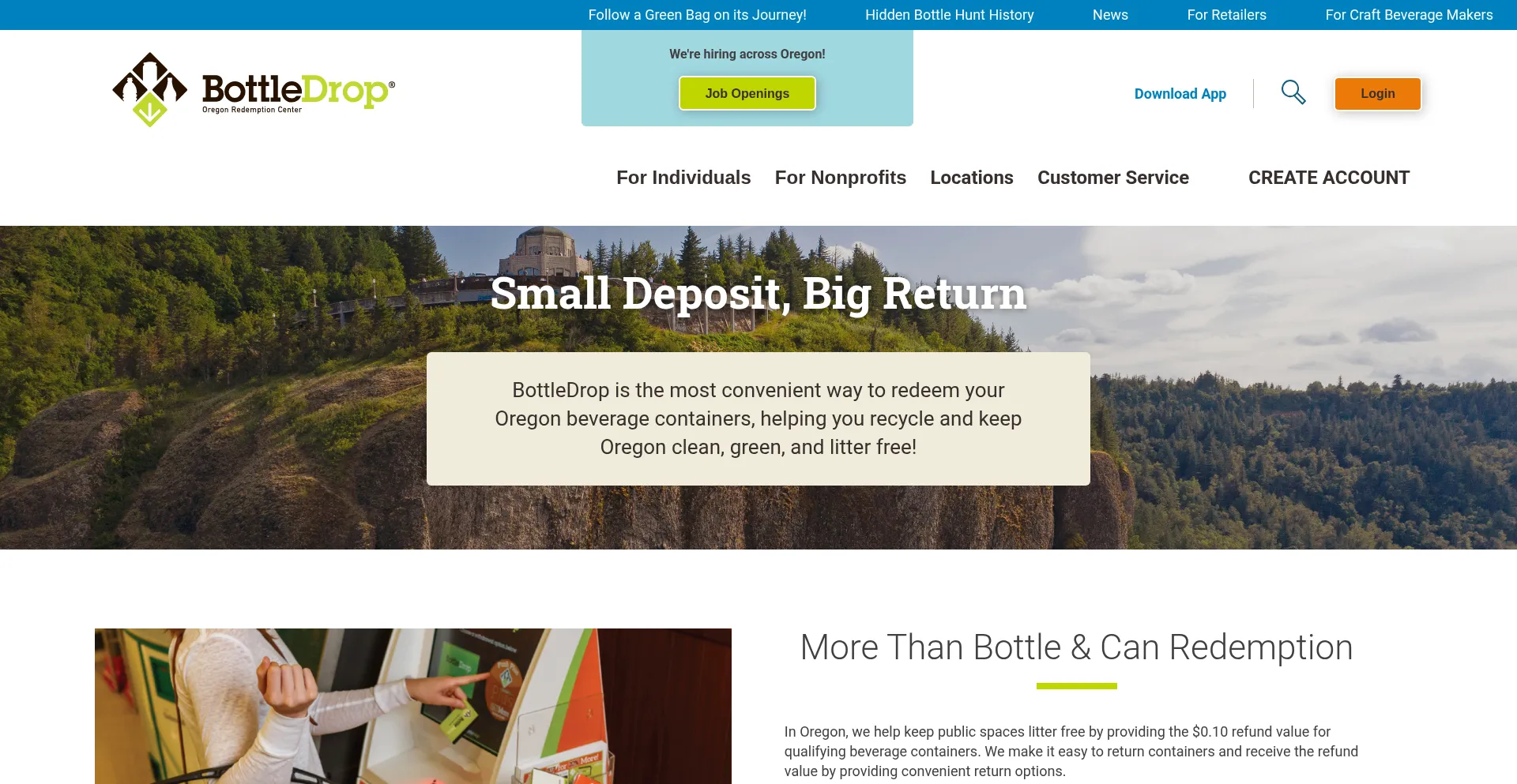BottleDrop is Oregon’s bottle and can return program. We help protect Oregon’s landscape as stewards of the Bottle Bill. Visit us to learn more.