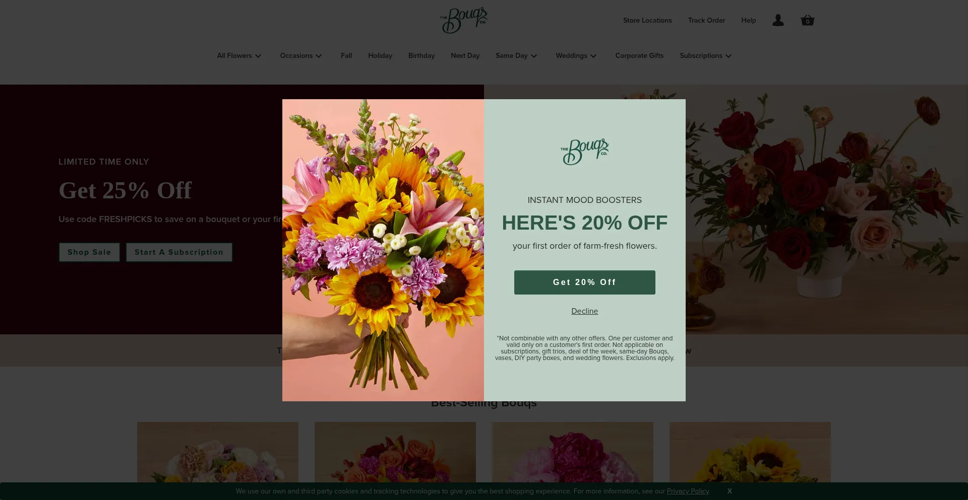 The bouqs.com website uses Google Tag Manager to add and update tracking tags on its website.